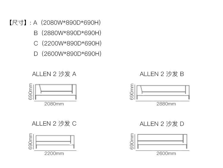 ALLEN 2 沙发 系列尺寸/示意图