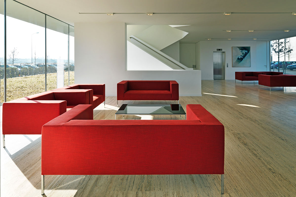 沙发和分区系统。实木和钢制框架中覆盖有可变密度的聚醚。镀铬脚,高19厘米。 使用没有左右扶手的元素,除了带有一个扶手的沙发之外,还可以创建巨型沙发或转角单元。