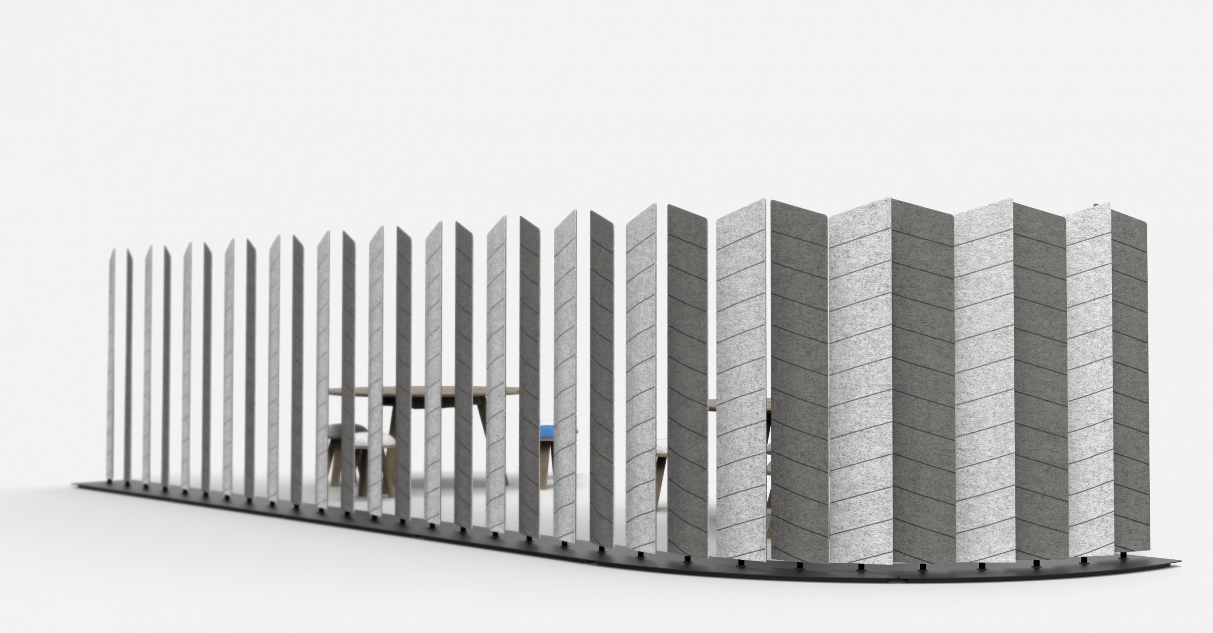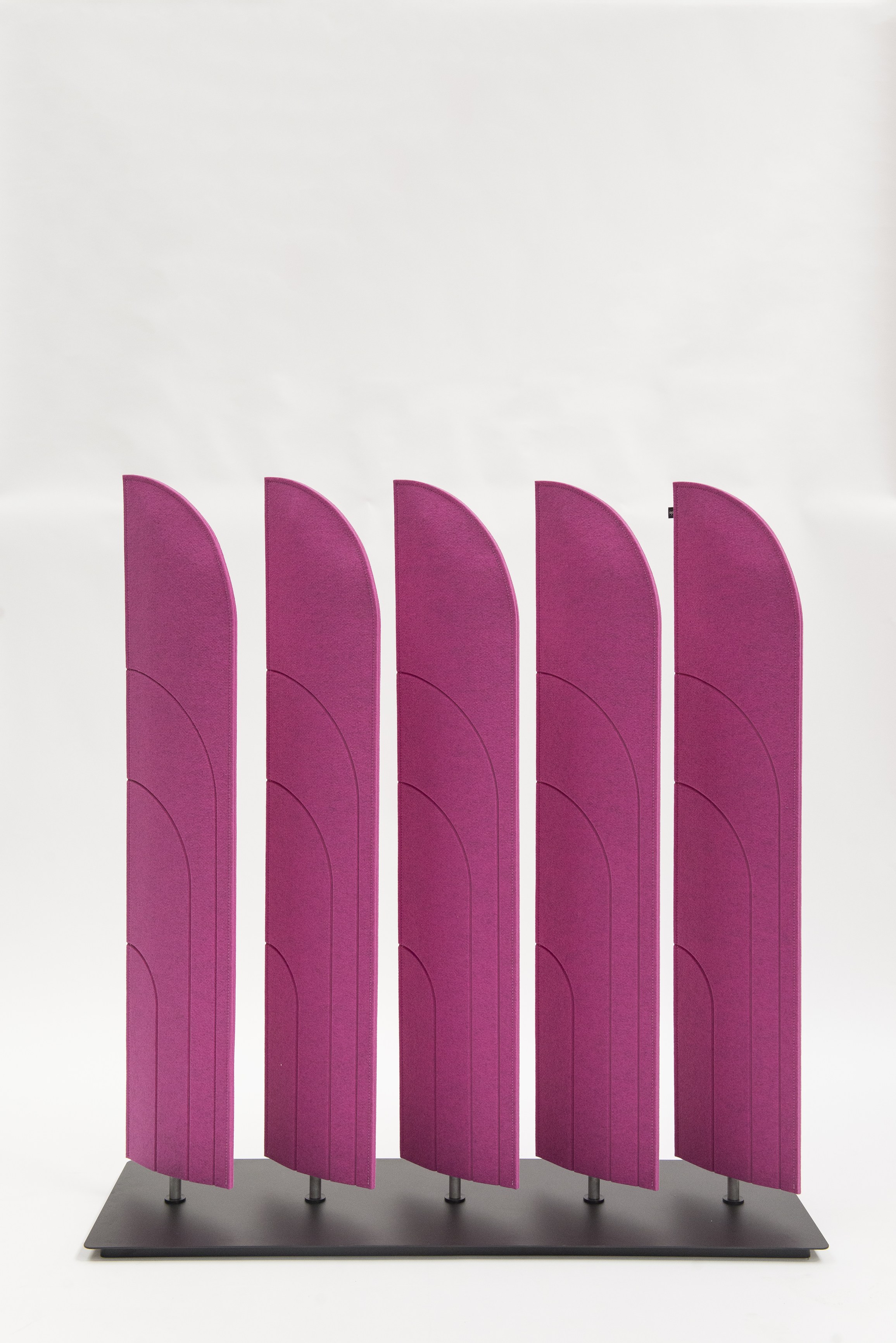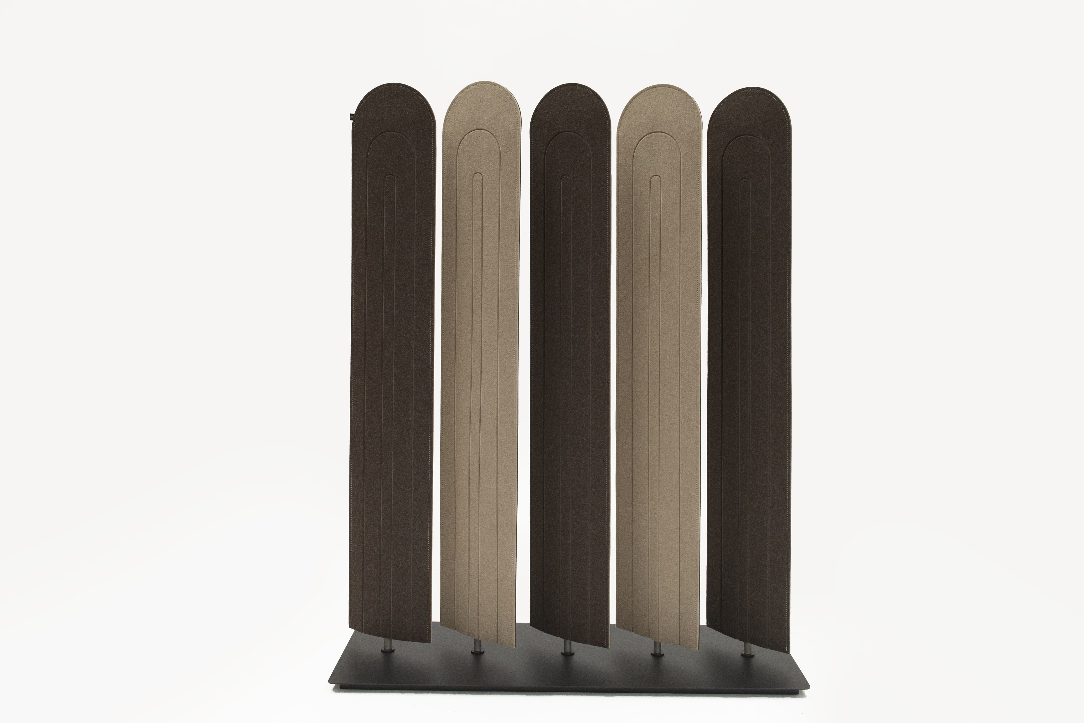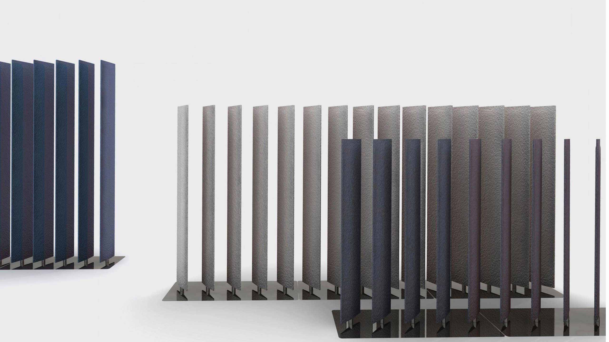 BuzziBlinds Classic于2011年推出,立即成为开放空间分隔面板的成功之选。五年后,是时候为该系列添加一些香料了。BuzziBlinds的灵感来自现代主义建筑。BuzziBlind的V形切口的定向所产生的节奏和音调为所有空间带来了动感和深度。 这个自支撑的分隔面板由一系列五个旋转的百叶窗组成。简单的旋转即可让您不同程度地打开或关闭百叶窗,以创建私人空间或开放空间。用户可以随时确定他们想要或需要专注于特定任务的隐私级别。 借助这些新的BuzziBlinds,我们希望提供创建更多个性化空间的可能性。 困难在于盲人逻辑特有的重复管理。我们的创作在视觉上不应太沉重。这就是为什么除了扩大它们之外,我们还对构成BuzziBlind的每个刀片顶部的形状进行了研究;我们还使用了Buzzispace开发的非常创新的V形切割技术,在百叶窗的外部材料上创建了图案。这些图案实际上仅通过光对隔音毡中“ V”形切口的影响以及它们的阴影才能显示出来。新的BuzziBlinds有4种不同的形状,可以直接在BuzziFelt中雕刻不同的V形图案。百叶窗可以具有不同的彩色表面,以便在百叶窗部分打开时产生有趣的视觉效果。在某些BuzziBlind上,还可以通过旋转两个刀片来创建不同的形状和新的图案。但是每个百叶窗也可以具有不同的颜色。它们也可以是直的或弯曲的... 所有这些为建筑师和最终用户提供了几乎无限的可能性,使新的BuzziBlinds成为表达自己的创造力的真正工具。