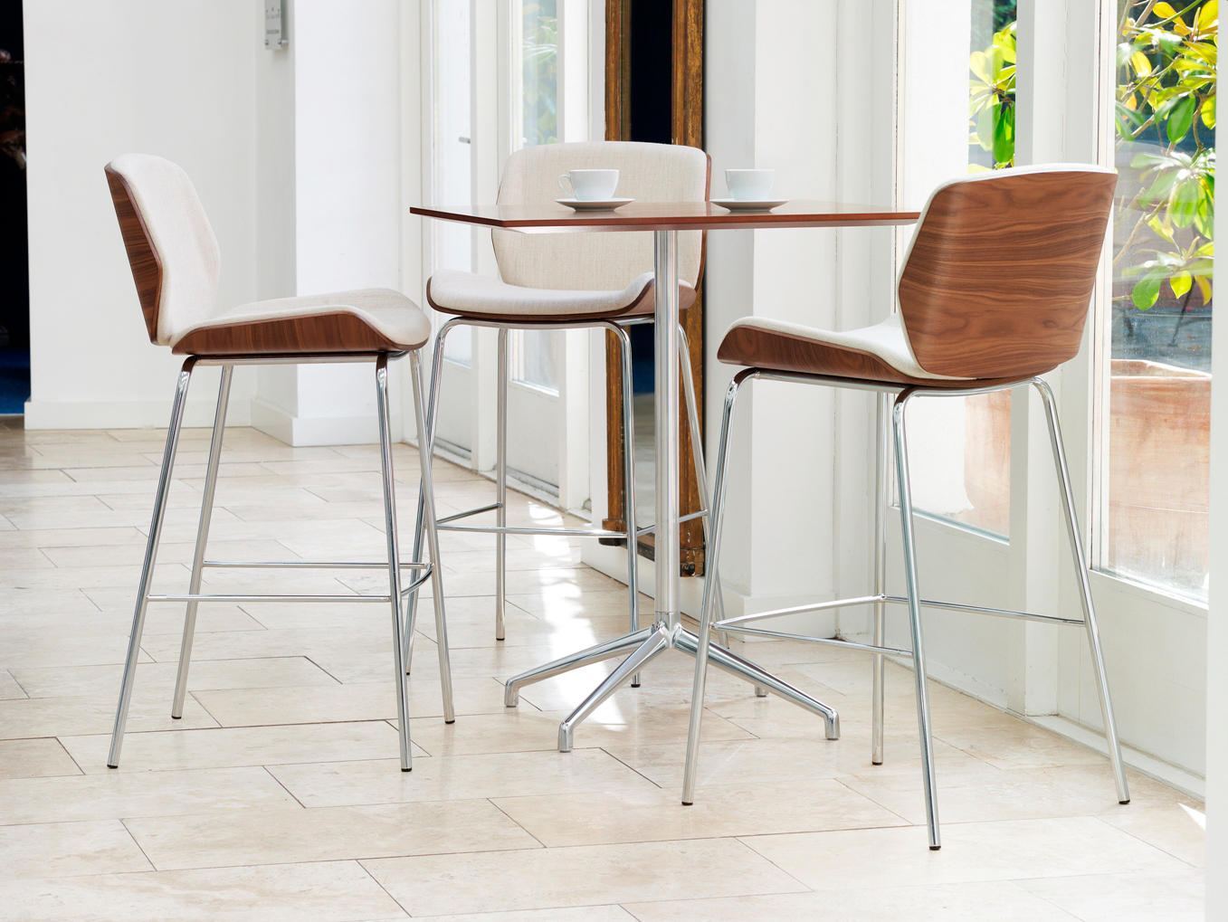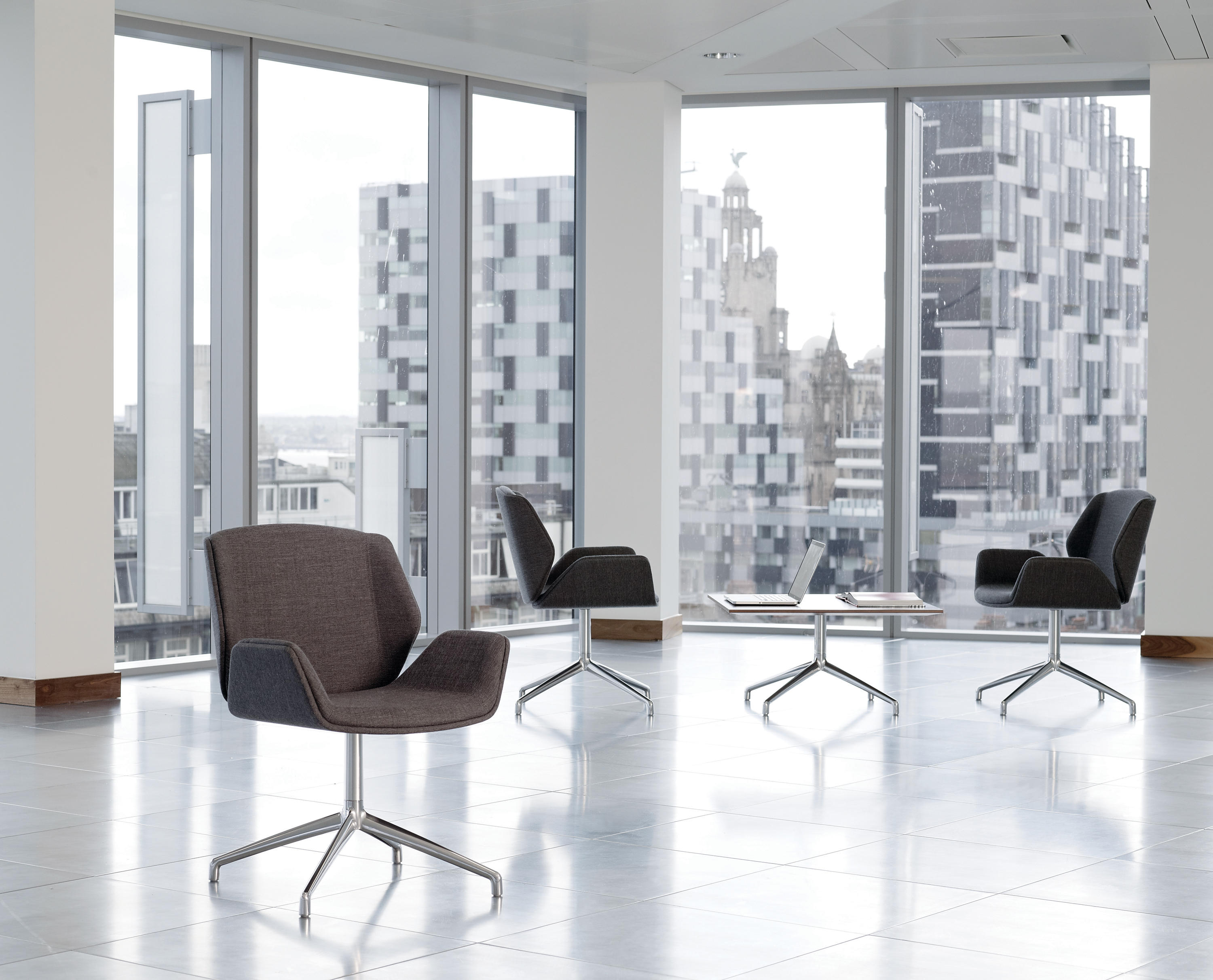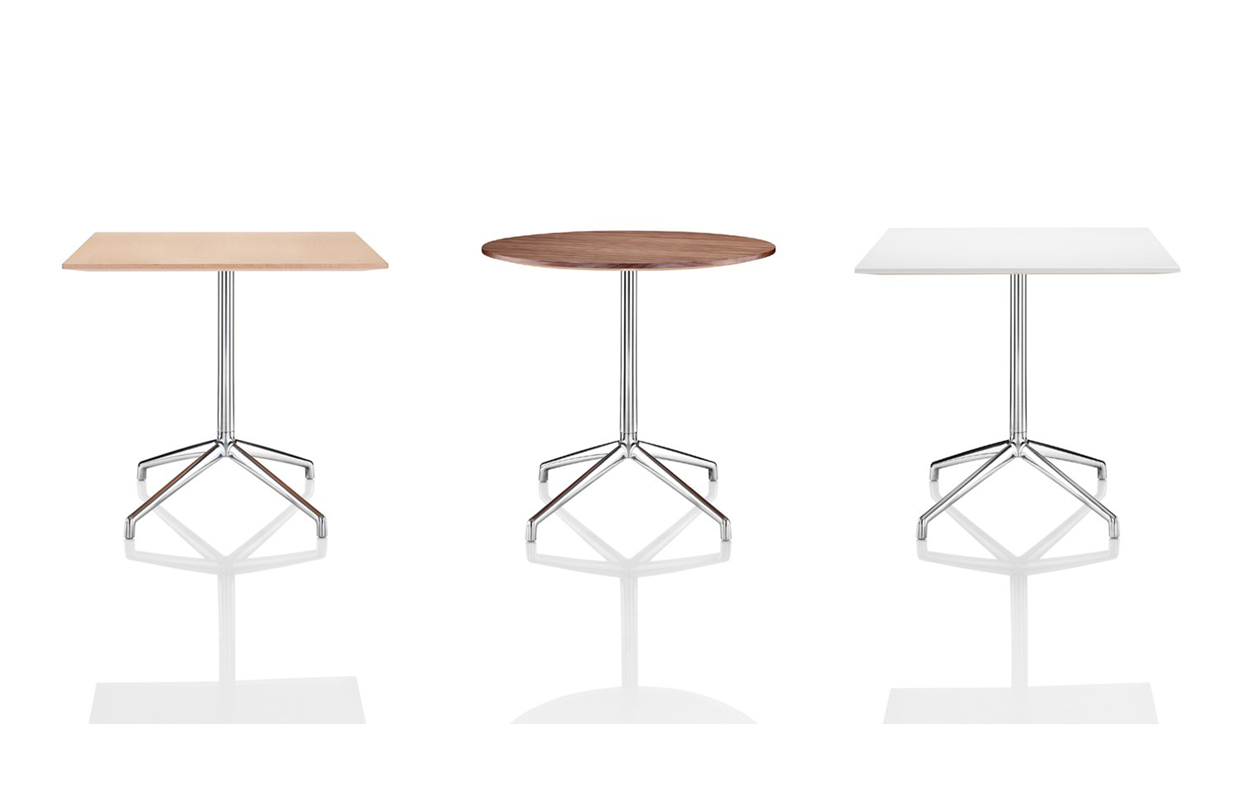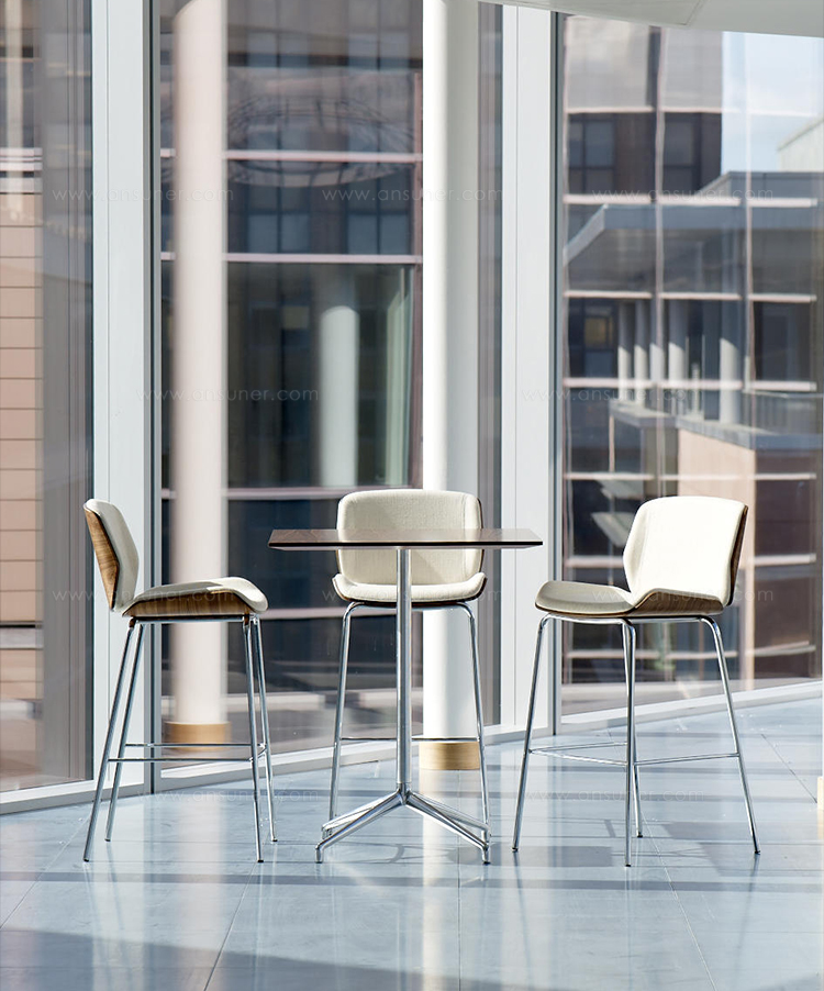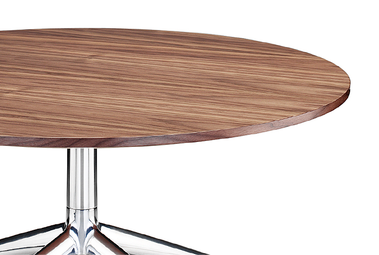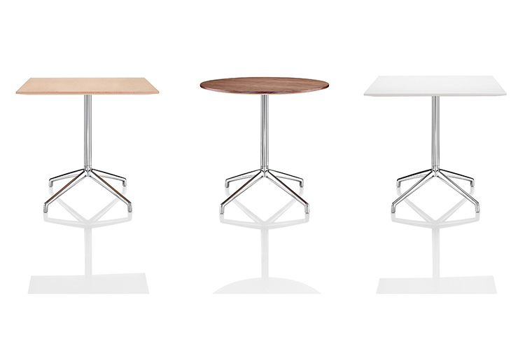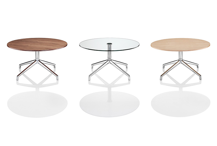Axis(轴心)桌子非常适合非正式的接待,中庭,会议或休息区。从Boss Design的几个系列中可以看到,Axis是一个细长的抛光铝四星脚基,可以选择夹层或贴面圆形桌面。可作为咖啡、会议或餐桌上的餐桌等适合各种用途。