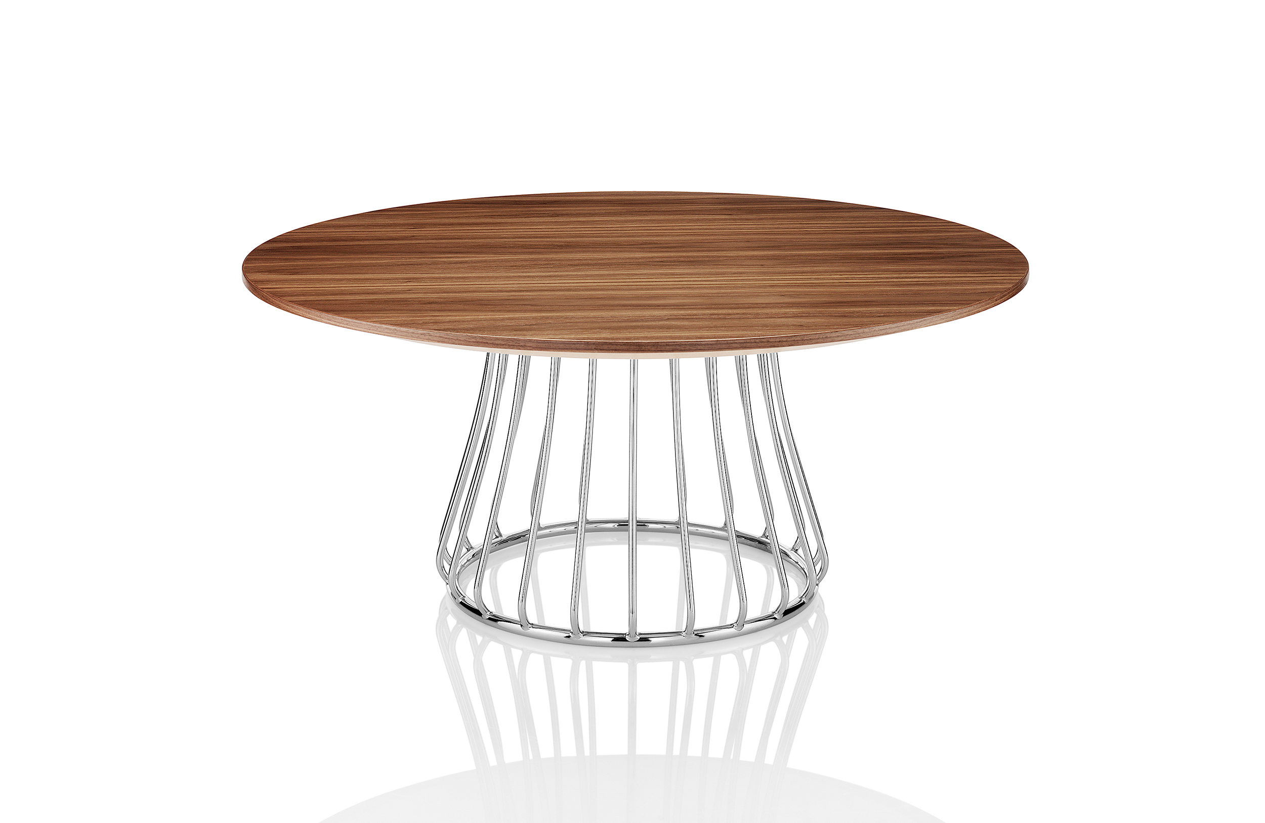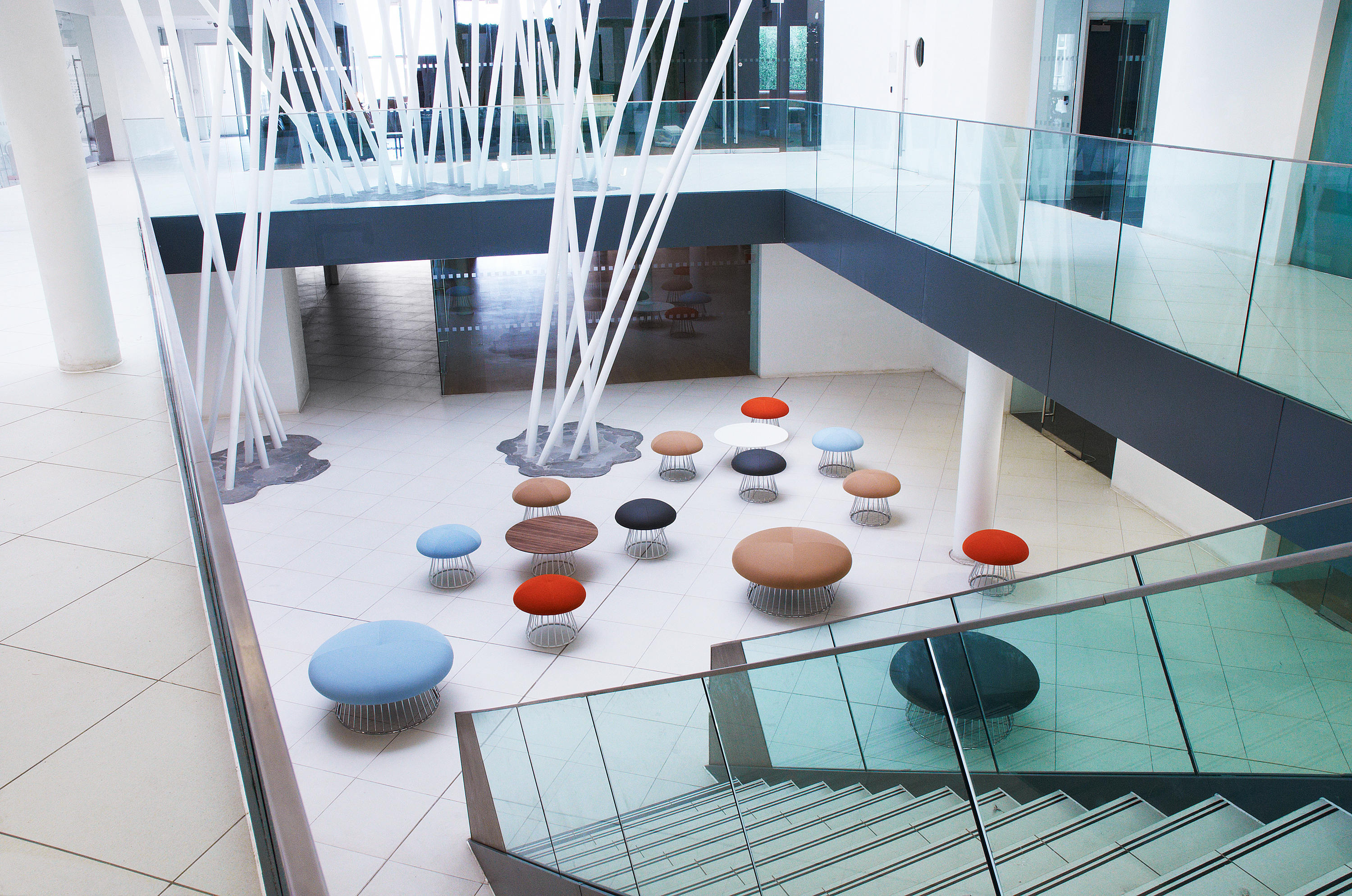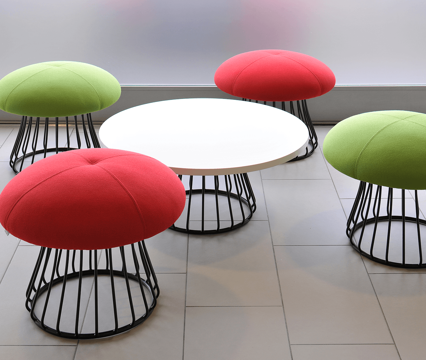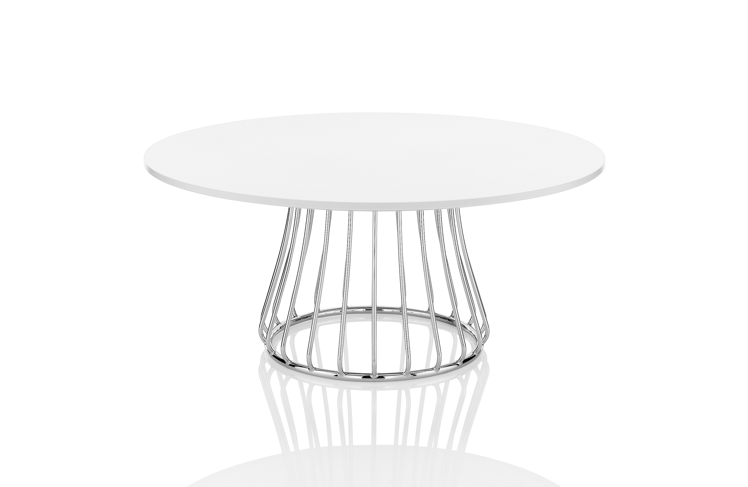 魔术系列有凳子和咖啡桌,都是由一个白色或黑色镀铬脚架组成。