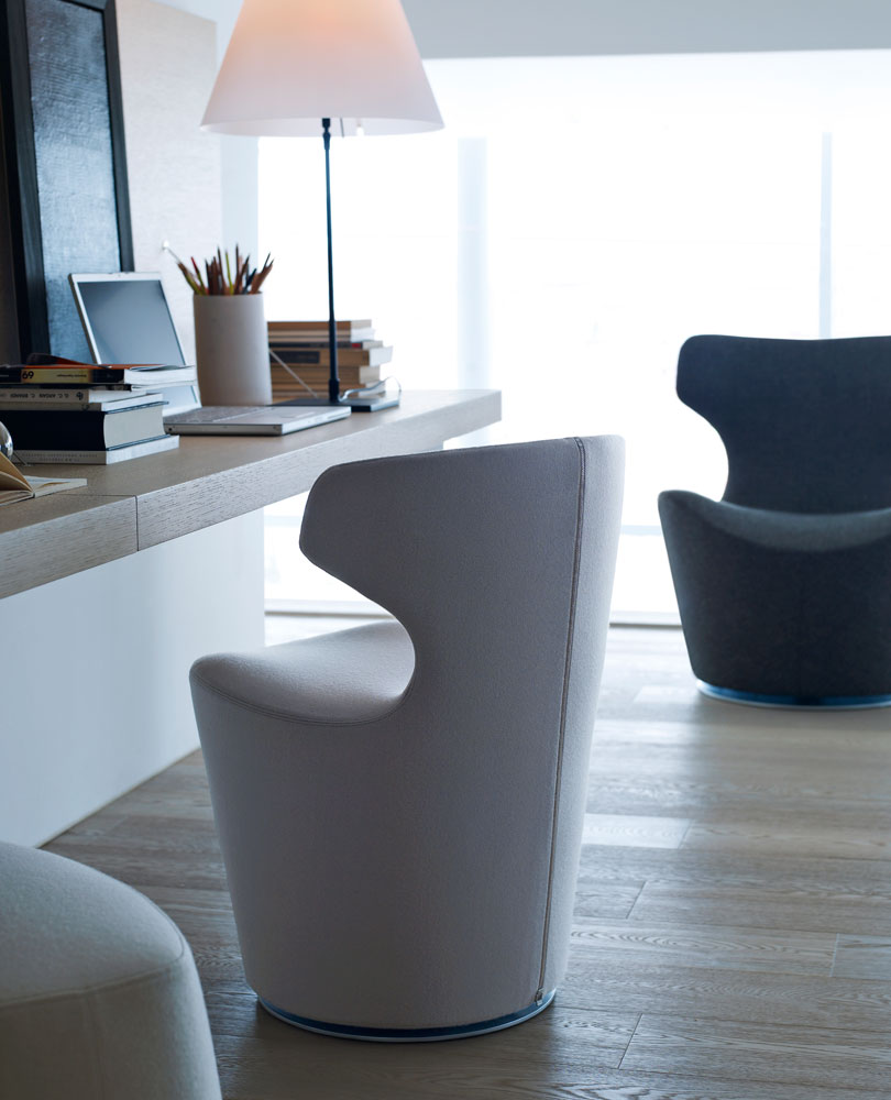 看似由單一材質一體成形的大型雕塑物件,Grande Papilio 流線形的設計從倒置的錐形體中雕塑而來。由下而上漸寬的椅背空間,提供了極致的舒適放鬆體驗。Grande Papilio 旋轉 360° 的底座系統能自由自在的環視空間中恣意流動的美好。強烈雕塑個性特質的 Papilio 系列家具也持續的擴大當中,不同大小和用途的 Papilio 家族:Papilio、Piccola Papilio、Grande Papilio、Love Papilio、Mini Papilio、Papilio Ottoman 提供了多元而完整的舒適空間。