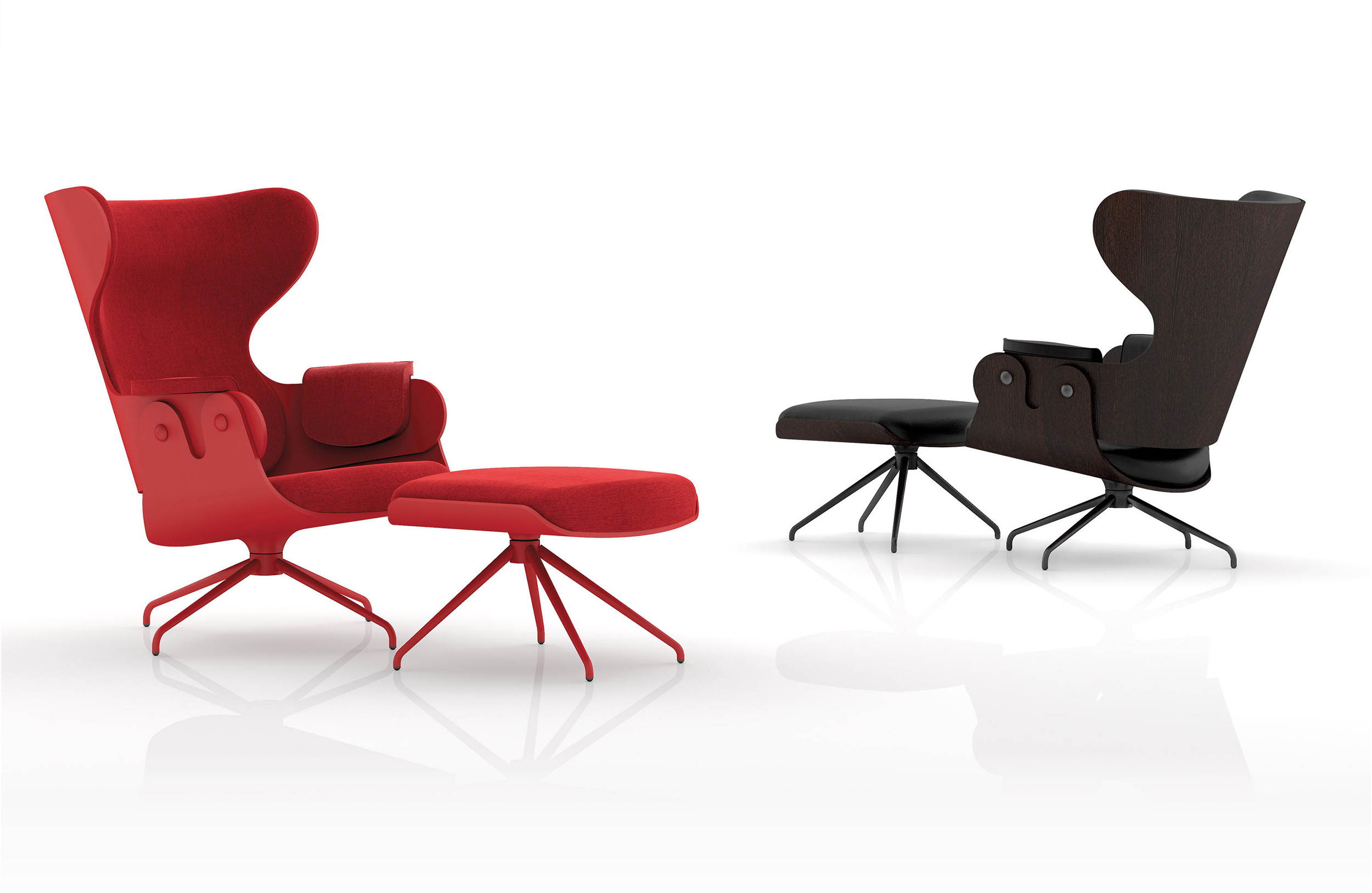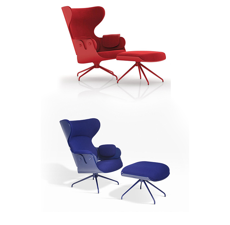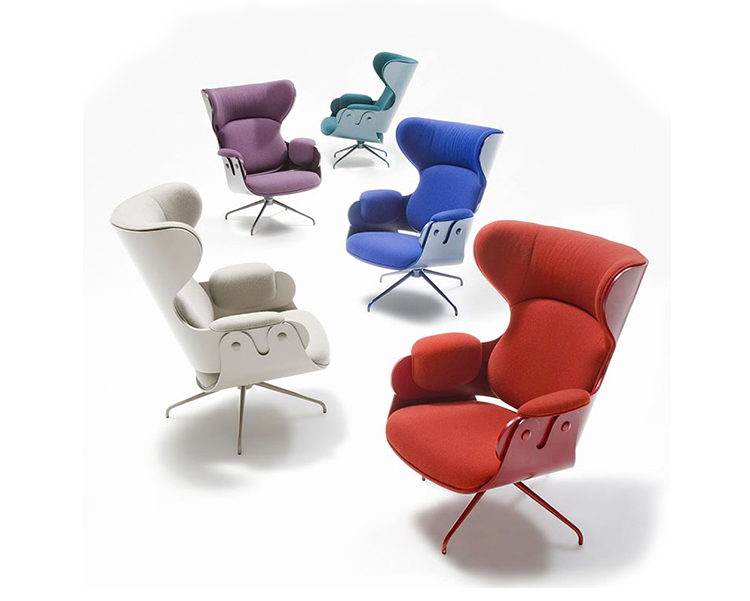 西班牙设计顽童 Jaime Hayon 2010 年在米兰家具展上再次吸引所有人的目光,Jaine Hayon 与西班牙家具厂牌 BD Barcelona Design 合作的 Showtime 系列家具自推出后俨然成为Jaime Hayon 个人的经典代表作,在 2010 年加入了新成员 Showtime Lounger 休闲椅,当中似乎不难发现有着 Charles & Ray Eames Lounge Chair and Ottoman 的影子,重新诠释这张20世纪经典椅款 Hayon 对设计大师致敬的同时,也注入更多 Hayon 幽默诙谐的设计手法。 Showtime 系列家具主要使用的材质和构造包括:优质夹板压模贴木皮而成、进口头层牛皮或进口羊绒布、内部填充高密度海棉、优质铝合金脚架。