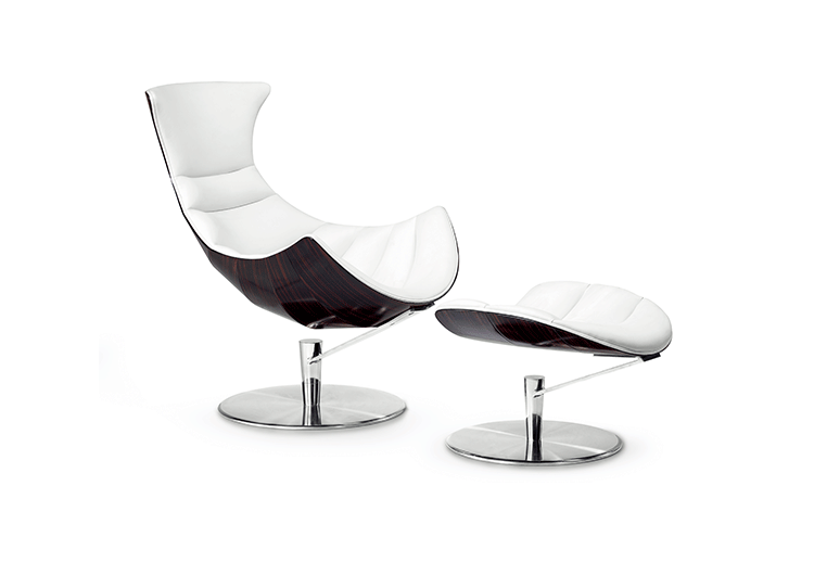 丹麦著名设计师Oluf Lund & Eva Paarmann设计的这款龙虾系列包含,Lobster Chair(龙虾椅)、Lobster Ottoman(龙虾脚踏)及组合搭配Lobster Chair and Ottoman(龙虾椅&脚踏)。此款椅子造型就像一只龙虾,采用优质夹板压模贴木皮而成、进口头层牛皮、内部填充高密度海棉、优质不锈钢脚架制成,简约立体的流线融入符合人体工学及空气动力学的结构设计,摆脱传统办公椅单调冷硬的刻板印象,达到舒适久坐的基本需求。