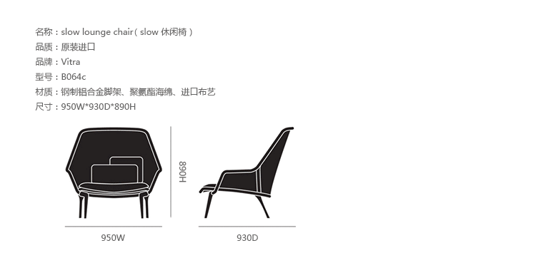 由Ronan 和Erwan Bouroullec 的设计组合打造,出自2007 年的作品,Slow Chair 为一款结合多种精致工法的设计作品,金属加弯勾勒出椅子主体,再以高科技的纺织样貌加以包覆,完成了椅背和座椅的形貌勾勒后,看似坚硬的印象,却在网状的织面结合下,兼富坚固,却保有弹性舒适的乘坐体验。然而,在座椅处,更加上了柔软的聚酯、羊毛坐垫,让整体舒适度,再向上提升一层。降低乘坐高度的设计,让Slow Chair 在搭配椅凳之后,又是休闲椅,又宛如一张让人放松的Lounge Sofa,由您去定义最适切的乘坐方式。在午后,在闲适的美好时光,好不令人陶醉。Slow Chair 极致轻量的风格打造,让您讶异于家具工业的快速演进和丰沛创意。坐垫卸下、和靠枕搭配,尽如你意,带来多种可能的使用乐趣。Slow Chair 四种色款,搭配内容如附图,无法另外客制订购,请依您所喜爱样式,挑选订购,每张Slow Chair 内含座椅、坐垫、及靠枕两件;此外,椅脚有深紫漆面或抛光亮银两种选择。