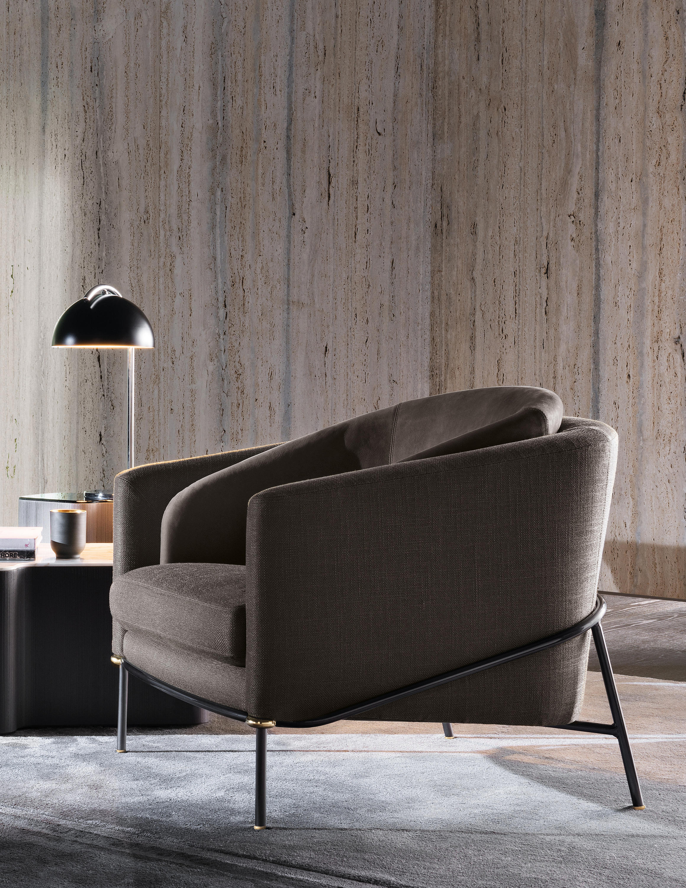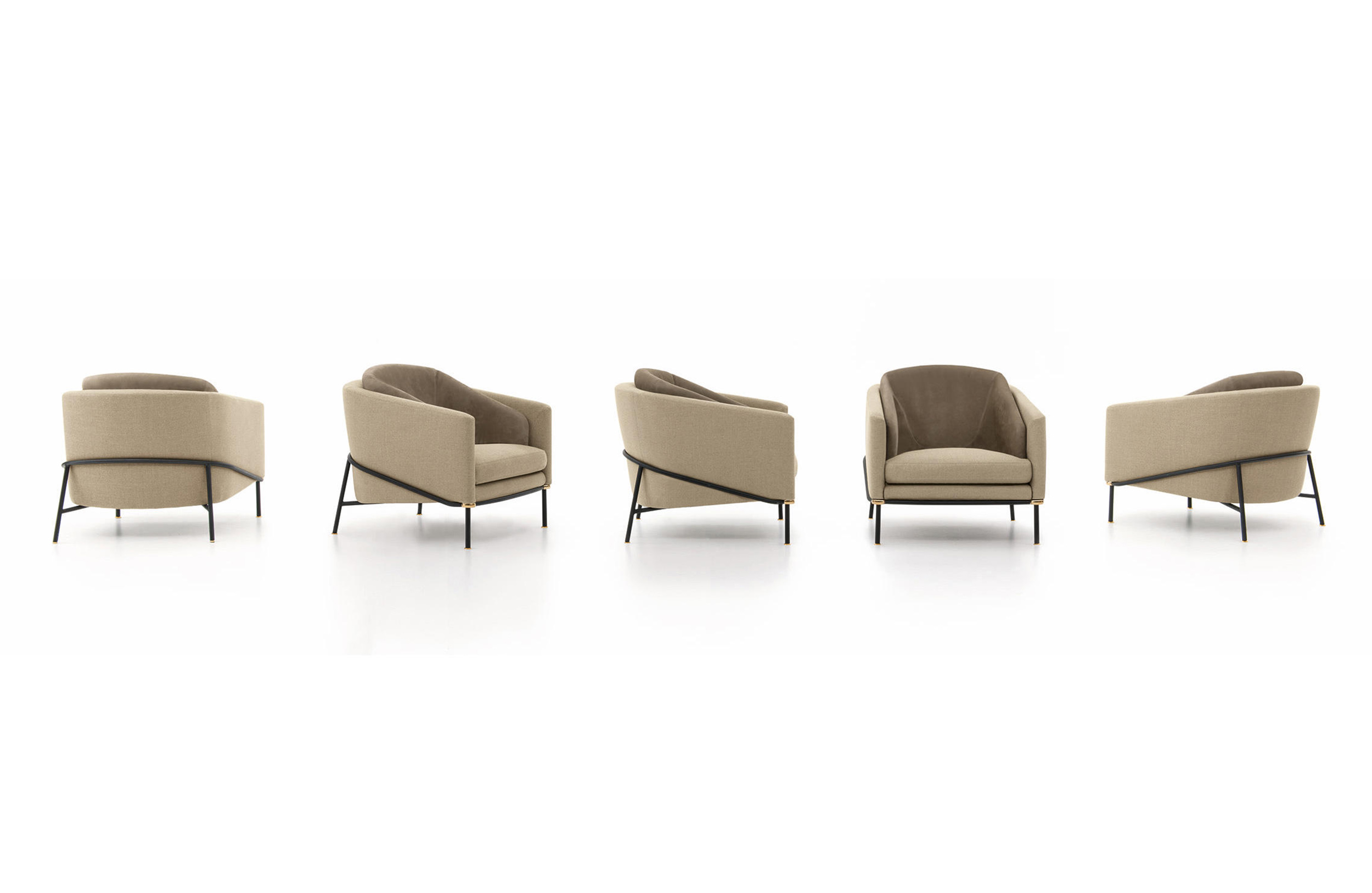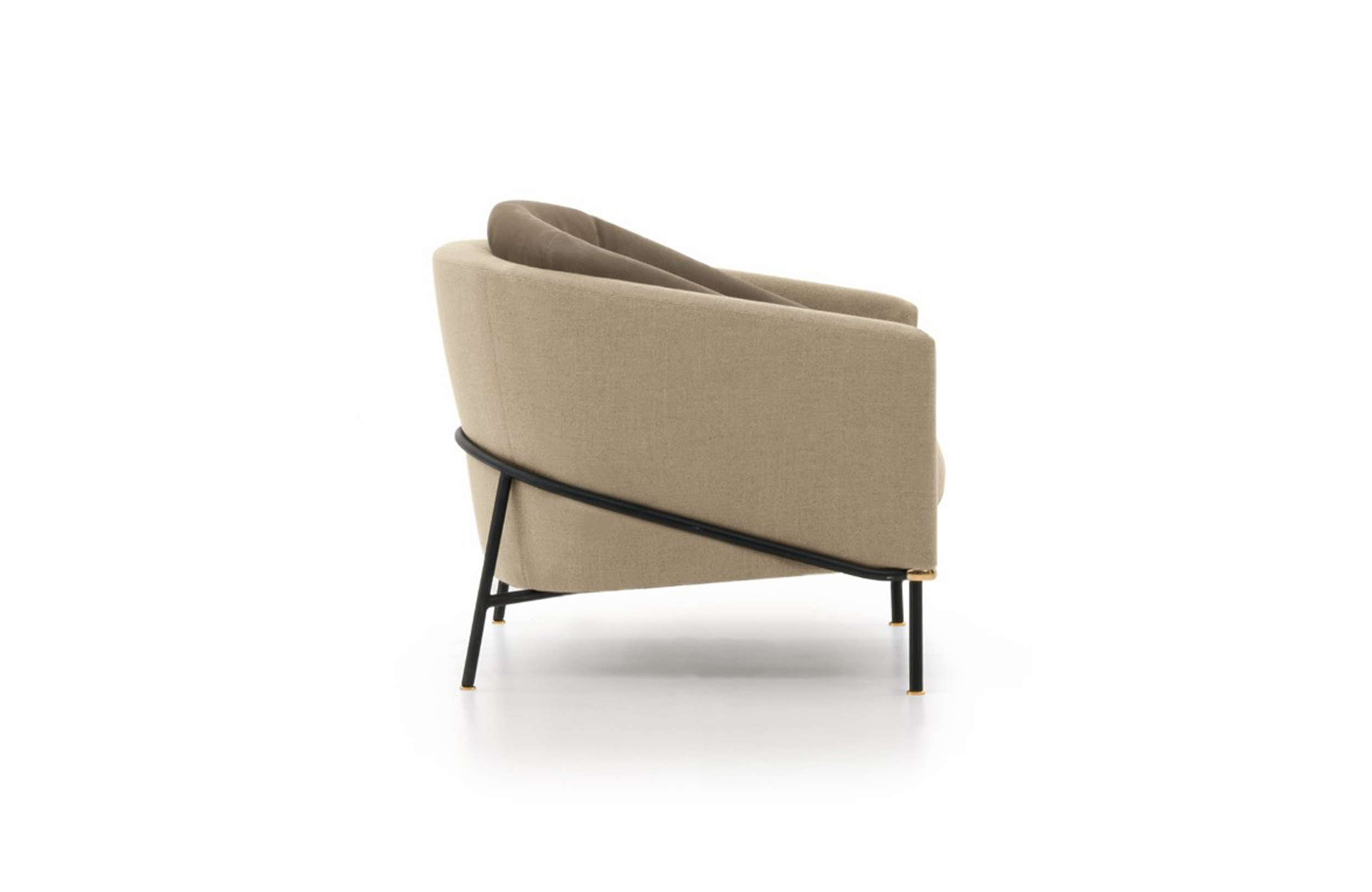Fil Noir沙发系列的名称源于一个物品,那就是线条——连续性的象征。线条赋予沙发形状和具象:不仅创造出整体造型,还提供支撑并环抱其中。线条体现出简约的材料之选:亚光黑色漆面的金属管。沙发边角的亮光金色、黑镍金属色或浅铜色的圆环为这一严谨的材料之选平添一份柔和的装饰效果,与冷峻的结构形成巧妙的对比。