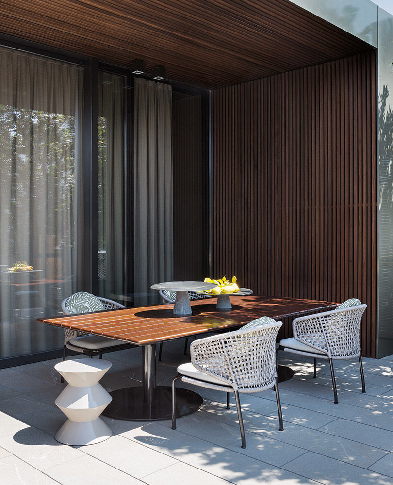 Aston是一个单品家族系列,其中包括沙发、沙发床、扶手椅、脚凳、座椅,为家居环境和“共享空间”提供优雅而时尚的装饰,在室内和室外皆可应对自如。阿斯顿“绳”户外系列采用金属材质的构架,搭配Pewter色聚酯漆面,部件都针对户外环境而经过特别处理,覆面采用疏水性纤维面料。靠背采用直径为7毫米的特殊聚丙烯纱线编织而成,两种颜色可供选择:浅灰色和深棕色,与全新Art Lifescape 02系列的面料和Alison “Dark Brown”户外系列的色调相得益彰。针对户外环境的特点,金属构架经过特别处理,搭配Pewter色聚酯漆面,覆面采用特殊聚丙烯纱线编织而成,有两种颜色可供选择:浅灰色和深棕色。坐垫采用Minotti Studio独家设计并通过激光加工而成的几何装饰。靠垫的内部填充物是高弹性聚氨酯泡沫,覆面采用疏水性纤维面料。
