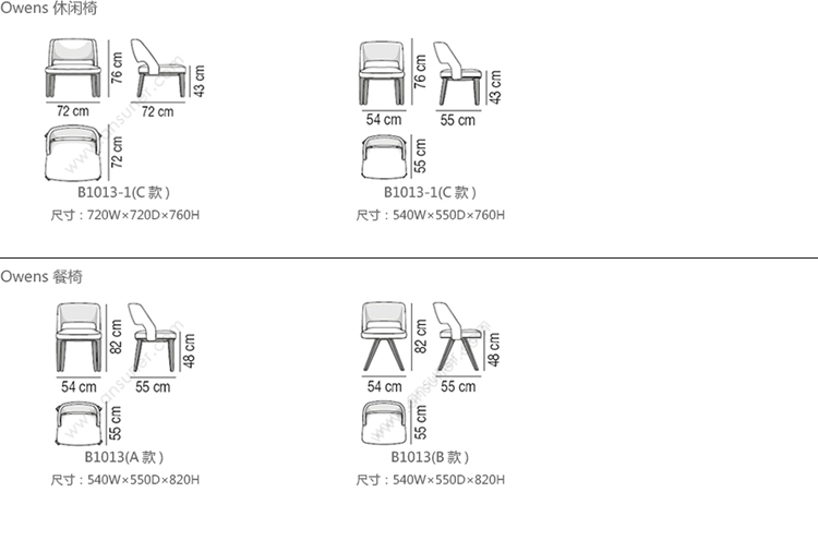 Owens 休闲椅 系列尺寸/示意图