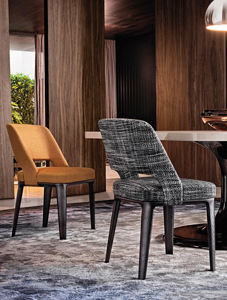 欧文斯座椅与家族中同名的扶手椅一样,将当代设计的精髓与传统的积淀融合在一起,以自身的技术诀窍为基础,体现出展望未来的特质。座椅除了有充满经典风情的Moka色白蜡木版本可供选择以外,还有令人眼花缭乱的设计方案,椅腿可以采用Pewter色漆面的铸铝材质,搭配Minotti Studio独家设计的色调。