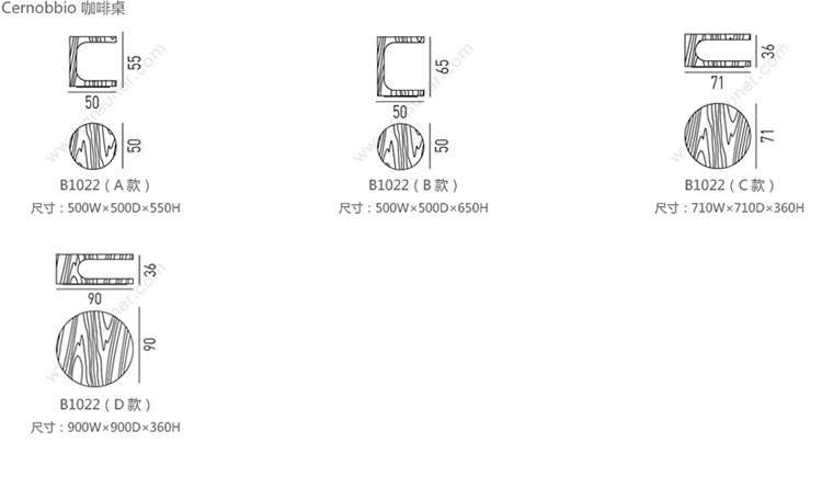 Cernobbio 咖啡桌 系列尺寸/示意图