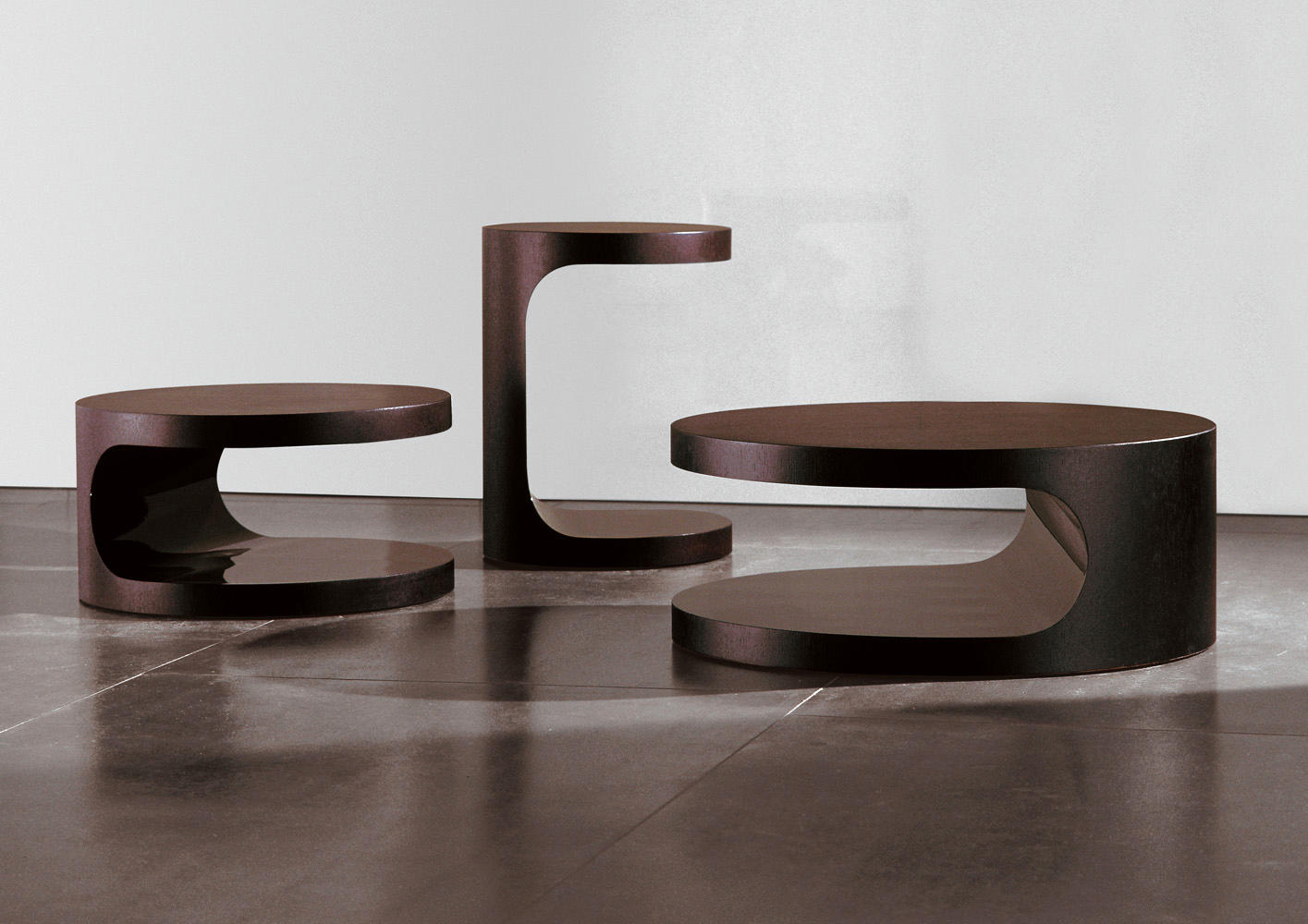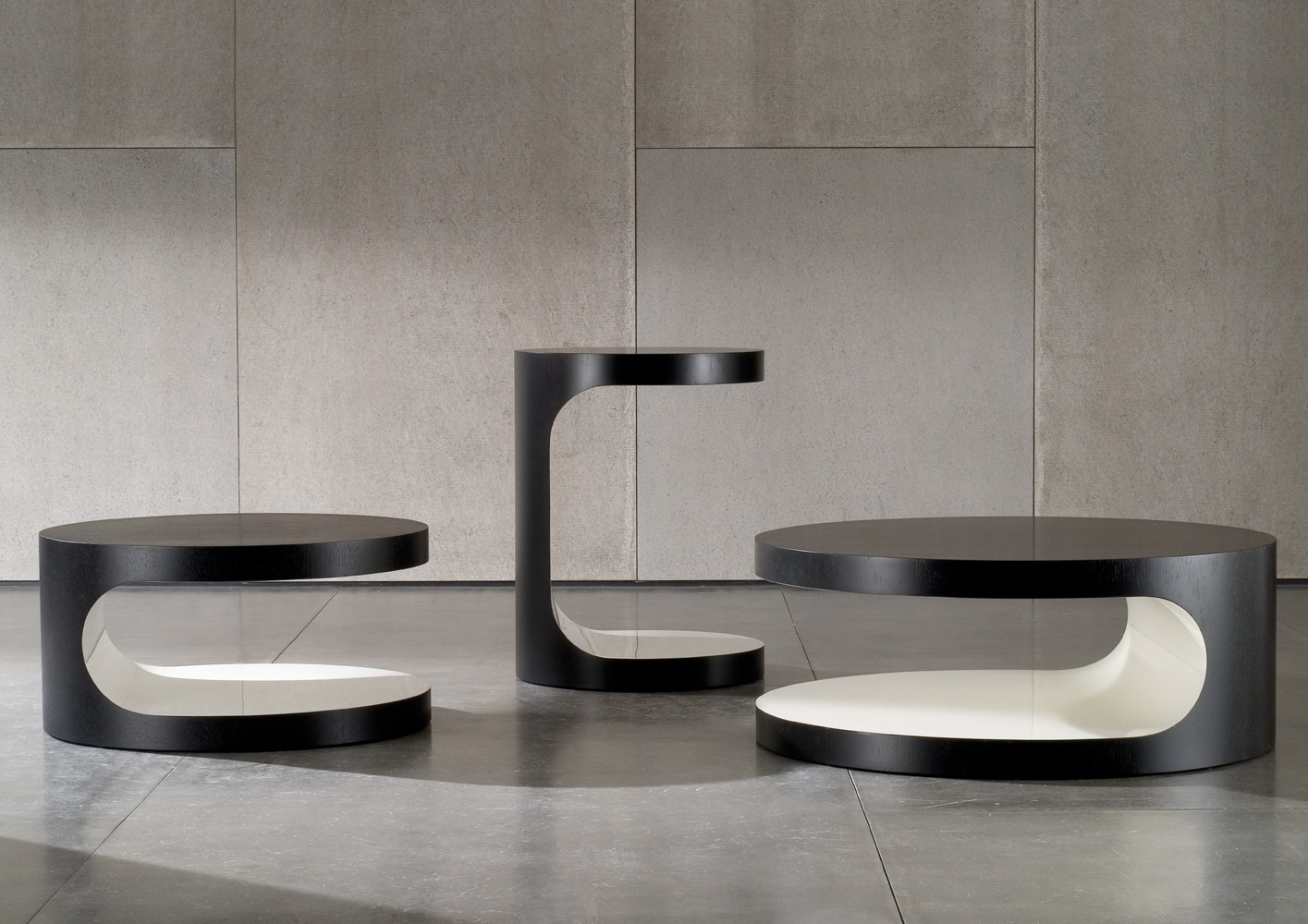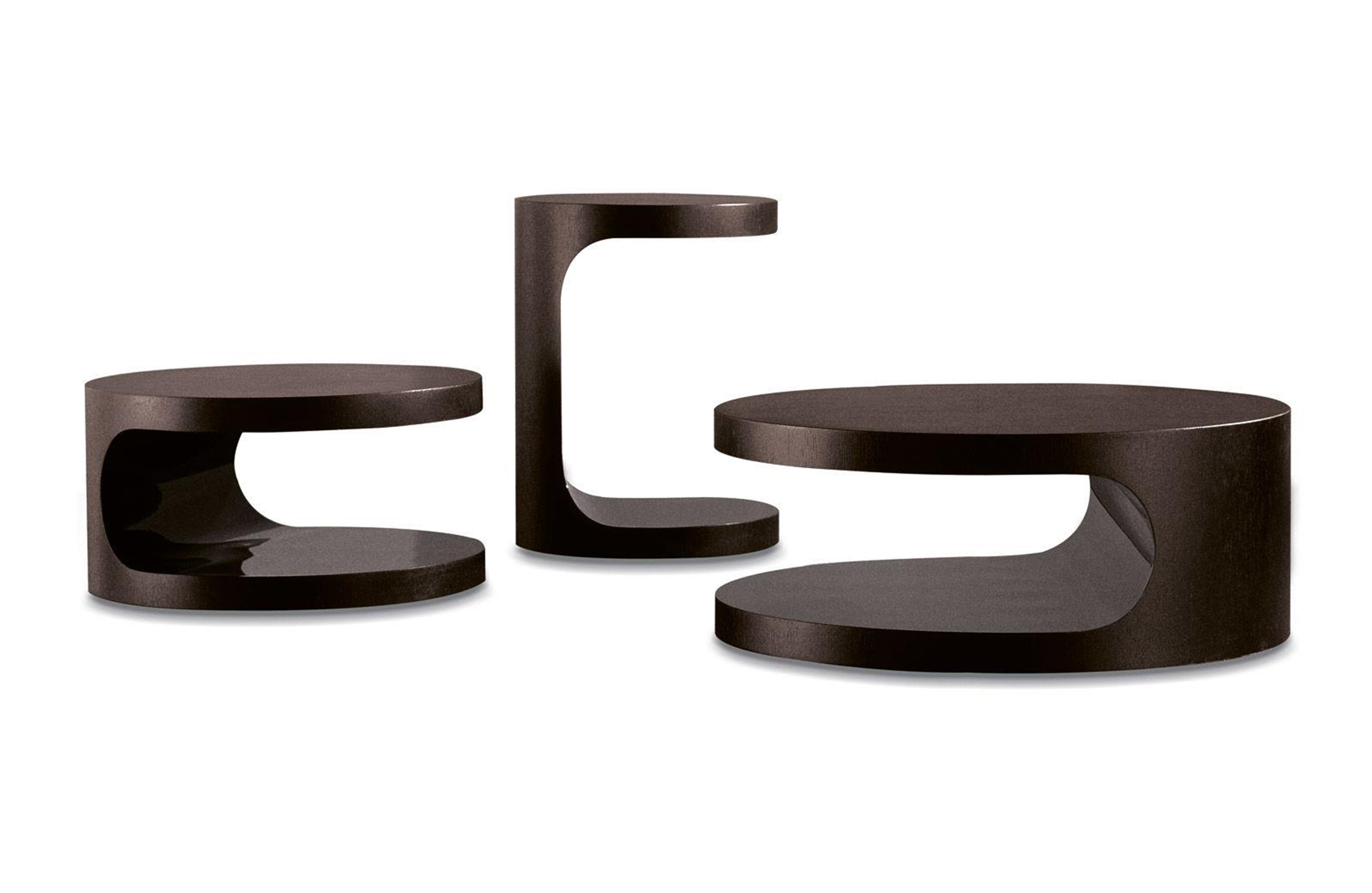 光面与亚光,凹面与凸面,形式与功能,感性与极简。三张边几诉说着设计的美感、格调与造型。这一系列产品会让人一见钟情,与沙发搭配,展现绝佳的功能性,美好而实用。