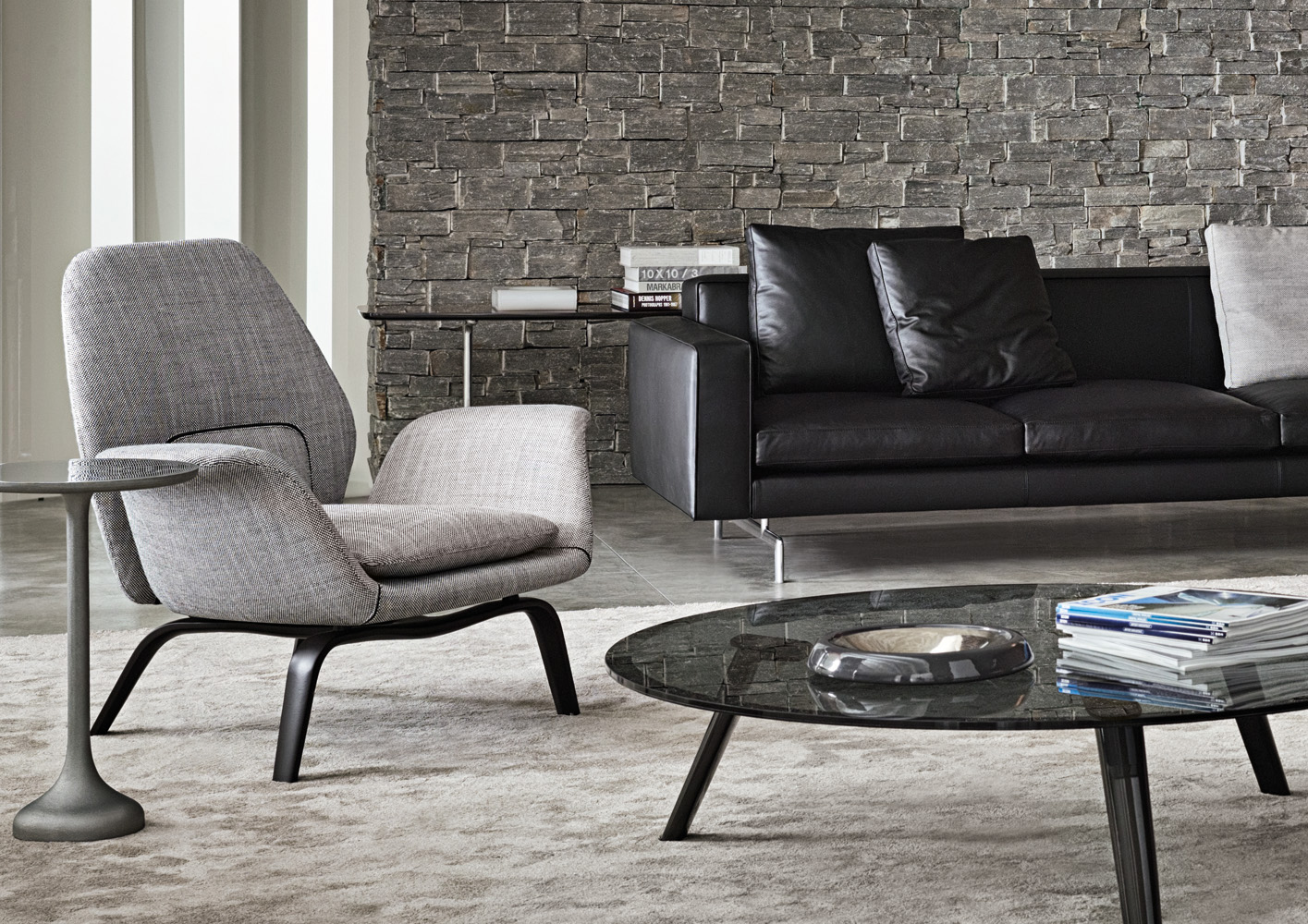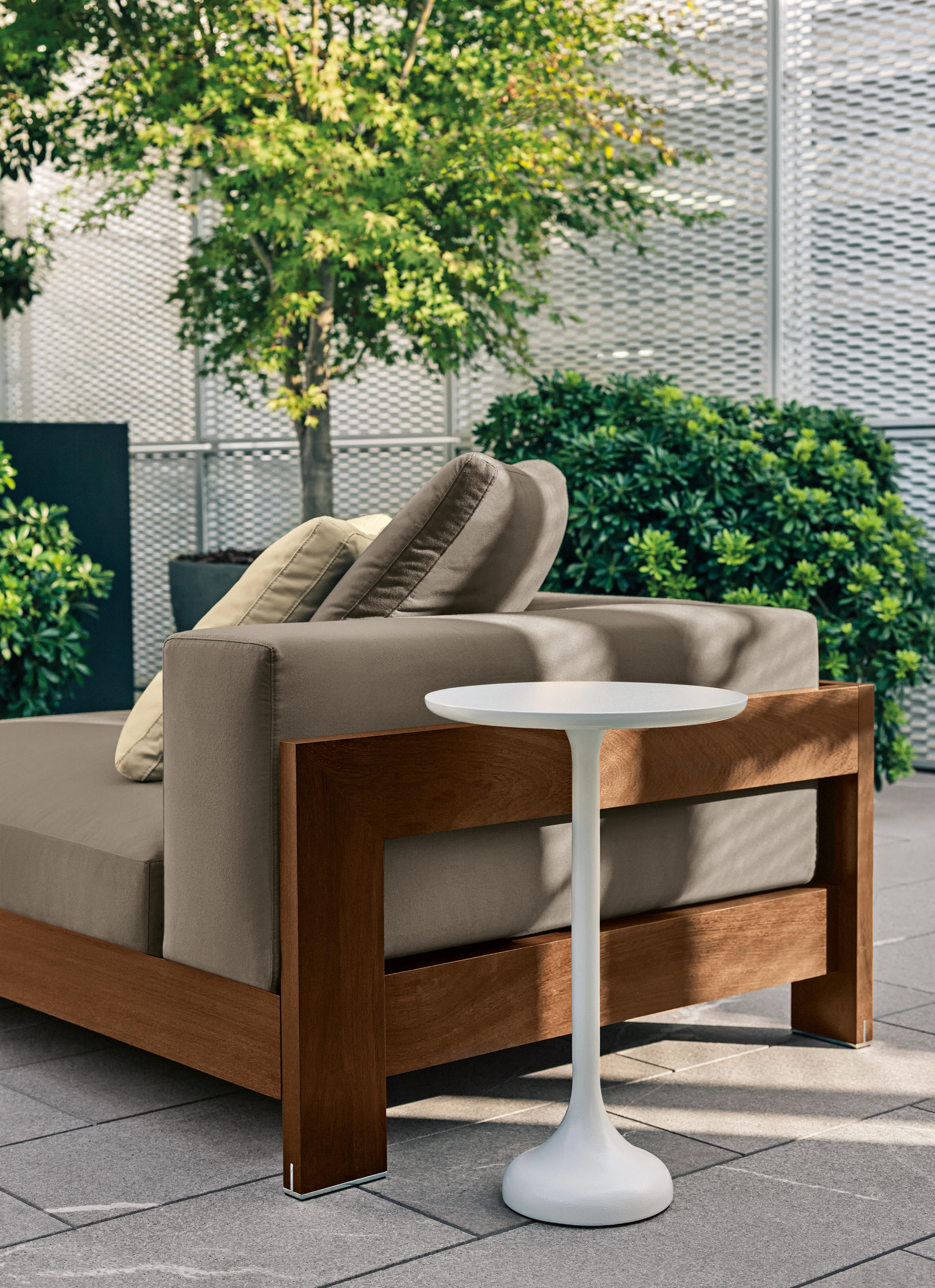 Warren边几优雅而内敛,提供实用的置物表面,搭配全新的沙发系列。修长的底座为其平添一份闲适的风格,不同的外观都拥有同样的自然气息。在高科技版本中,Warren采用整块铸铝制作而成,基座采用喷砂铝材,台面为亮面拉丝铝材。第二个版本还可以选择黑色开孔白蜡木实木基座搭配Sand色和Celadon色的亮光漆台面。