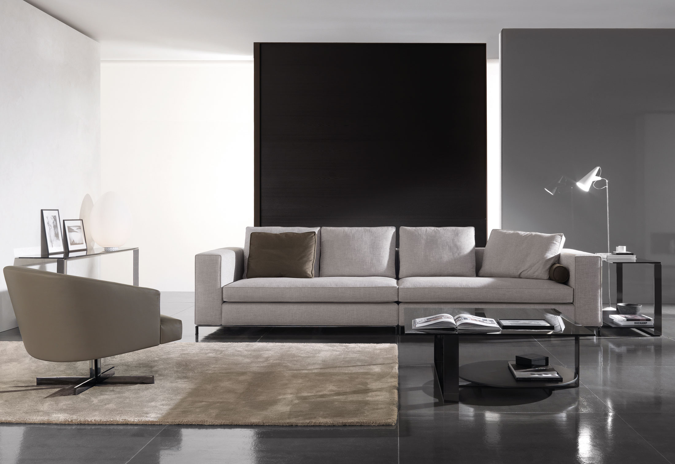 Bresson的边几系列有两个版本,圆形和方形,具有2009系列的风格。不同材质的组合使Bresson独一无二,与Williams搭配相得益彰。激光切割的黑镍金属构架的曲线结构,借鉴了Williams沙发的基座设计,打造出极致的美感。
