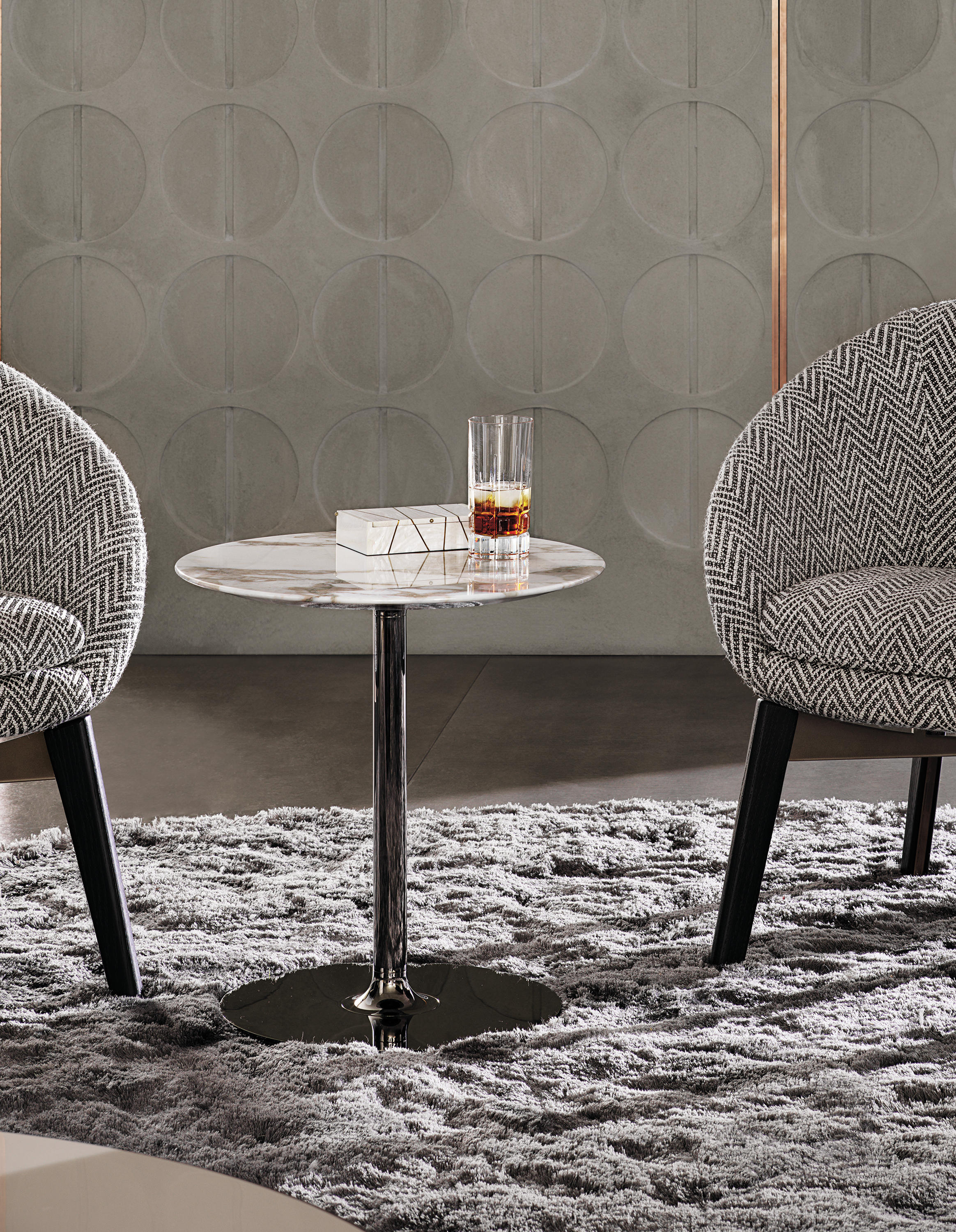 它在客厅和侧桌的版本中都有构思,它的特点是在卡拉卡塔或石灰色大理石上有一个珍贵的顶部。