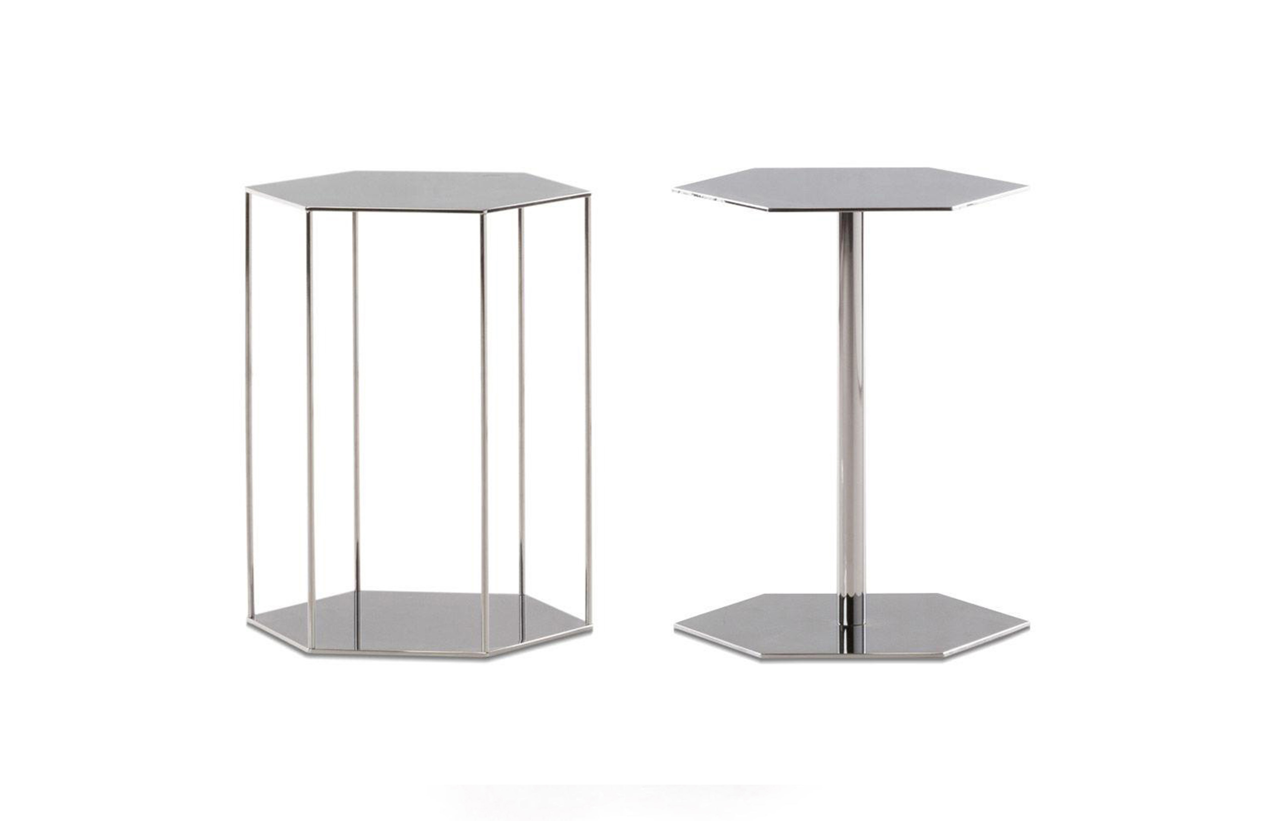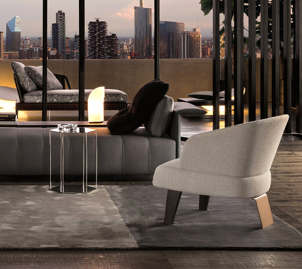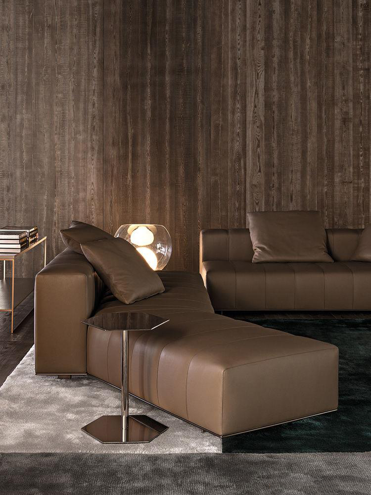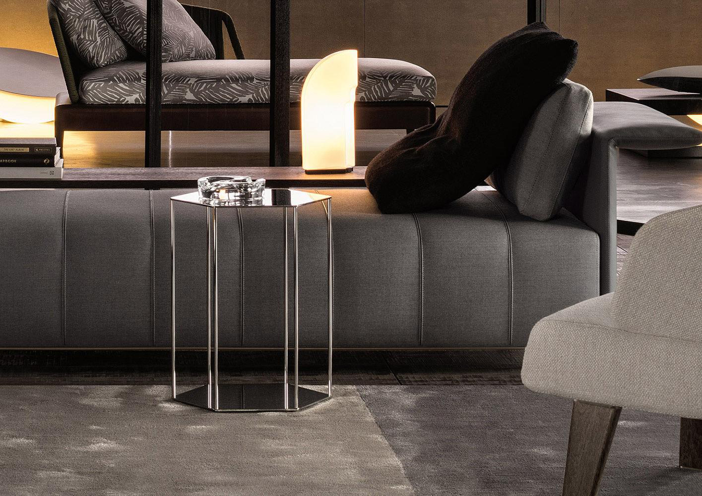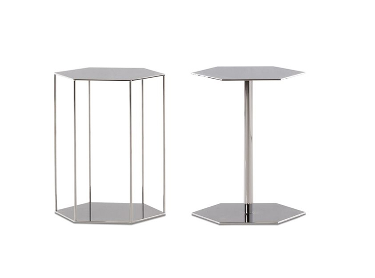 这一系列专为打造居住空间的实用元素而设计,布里斯莱边几具有独特的个性。基座和桌面是完全对称的六边形,这也是2016系列的主旋律之一,镀铬金属材质则突出其利落的个性。布里斯莱推出两个版本:一款是基座和桌面对应的六个角分别用细杆连接,另一款是由中心位置的镀铬金属杆连接基座和桌面。布里斯莱是一款多用途的边几,可以随心所欲地搭配Minotti产品系列中的所有沙发和扶手椅。