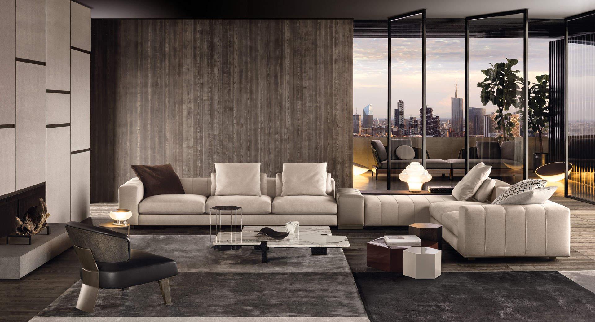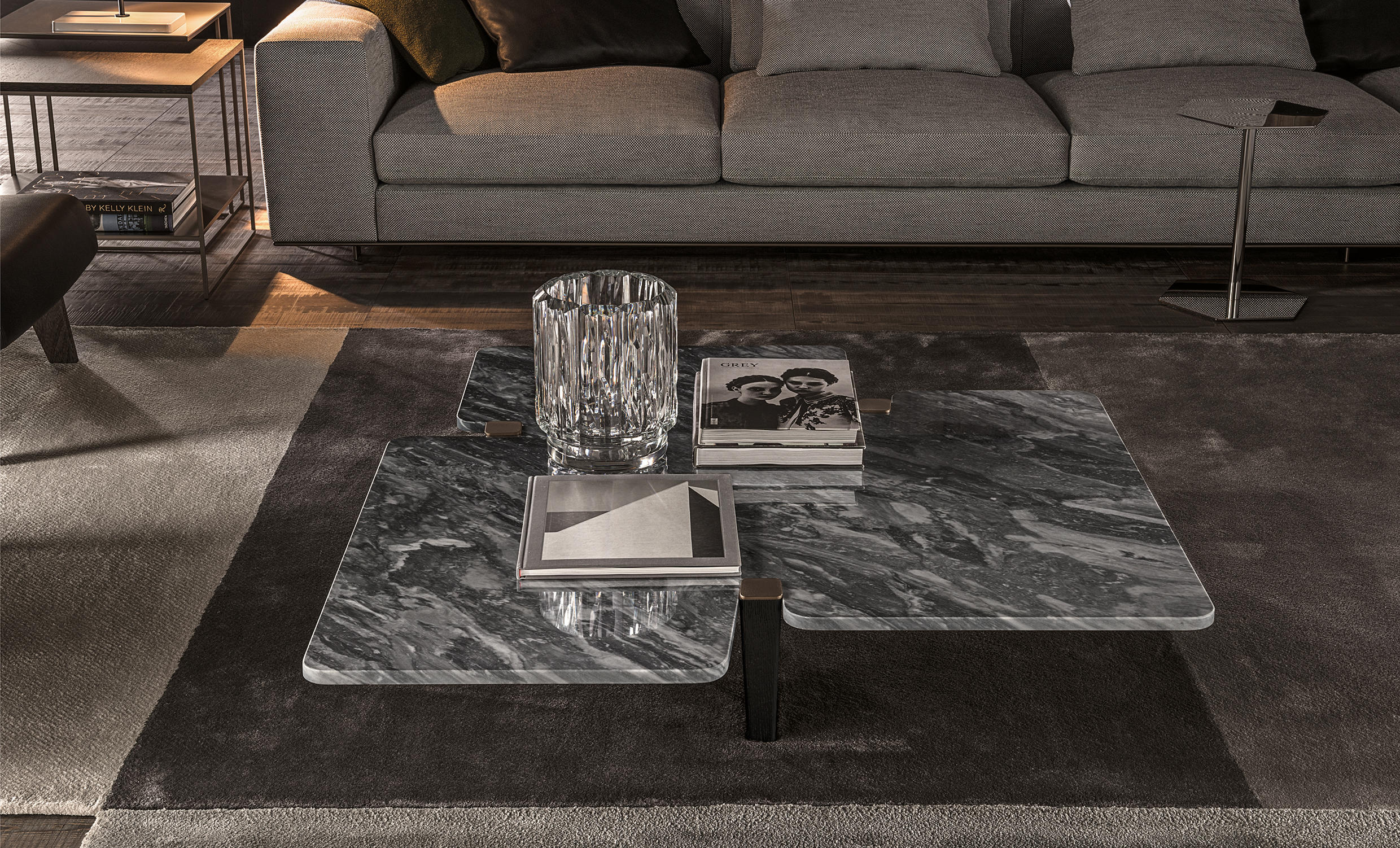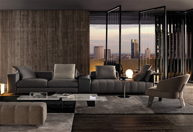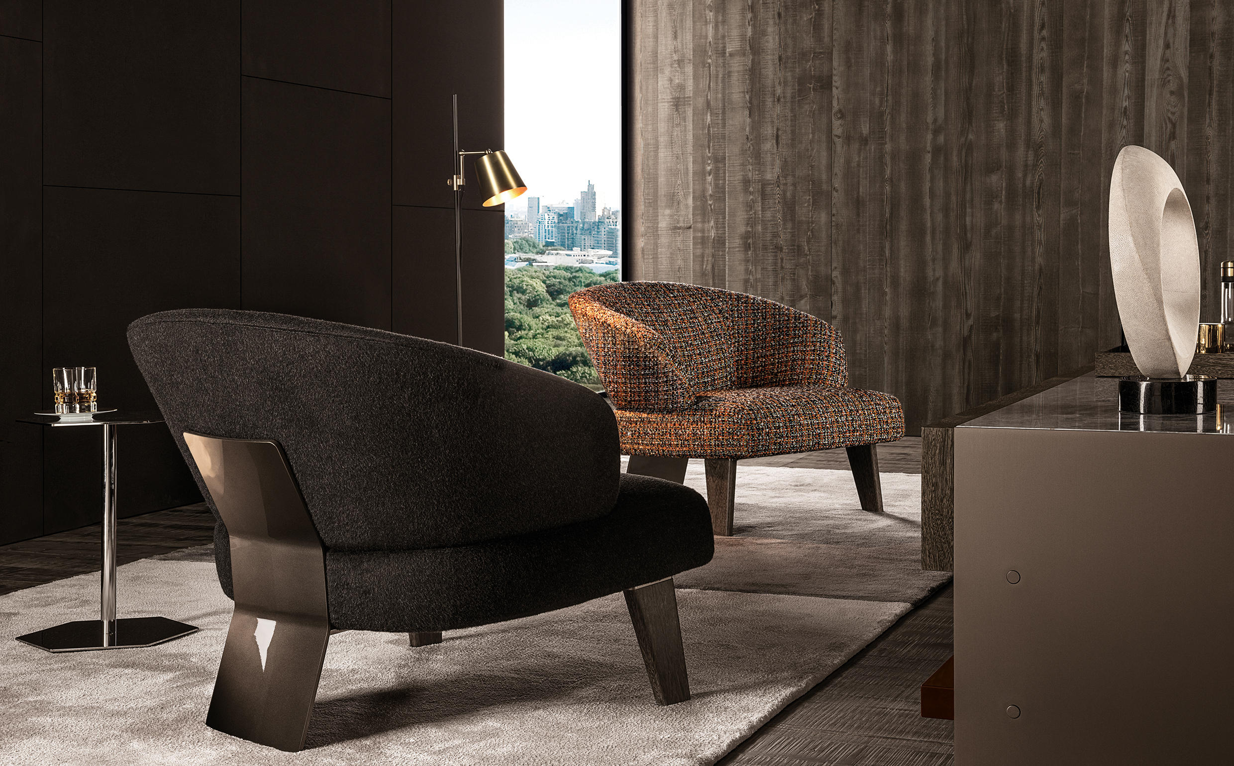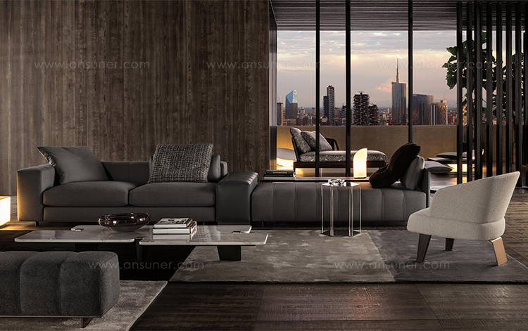 这一系列专为打造居住空间的实用元素而设计,布里斯莱边几具有独特的个性。基座和桌面是完全对称的六边形,这也是2016系列的主旋律之一,镀铬金属材质则突出其利落的个性。布里斯莱推出两个版本:一款是基座和桌面对应的六个角分别用细杆连接,另一款是由中心位置的镀铬金属杆连接基座和桌面。布里斯莱是一款多用途的边几,可以随心所欲地搭配Minotti产品系列中的所有沙发和扶手椅。