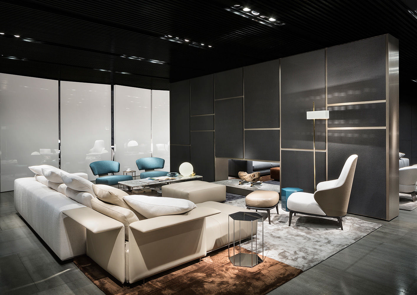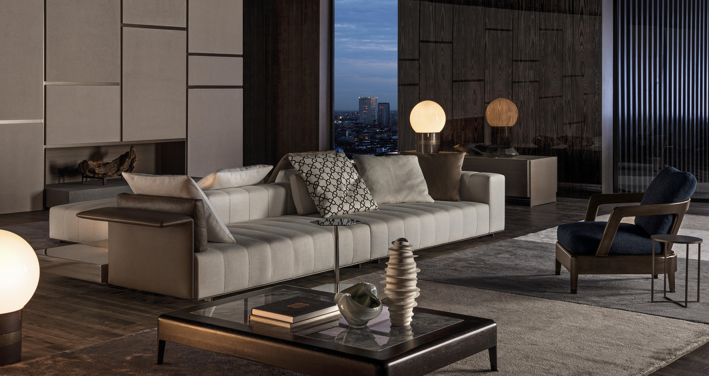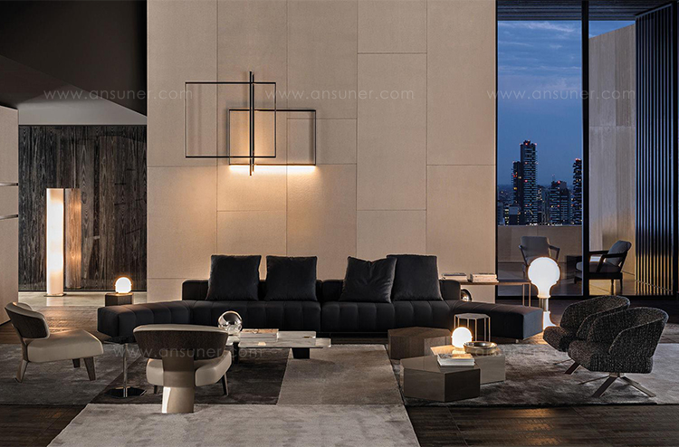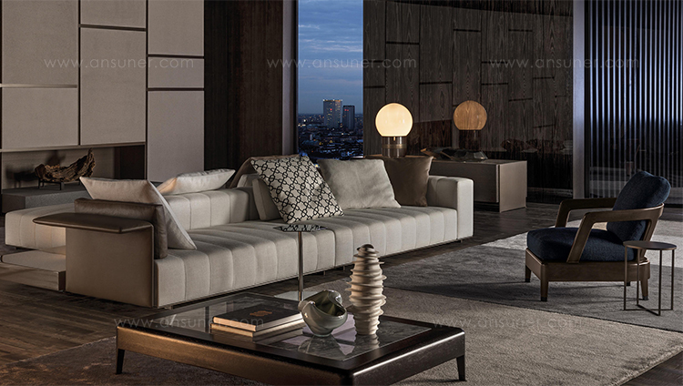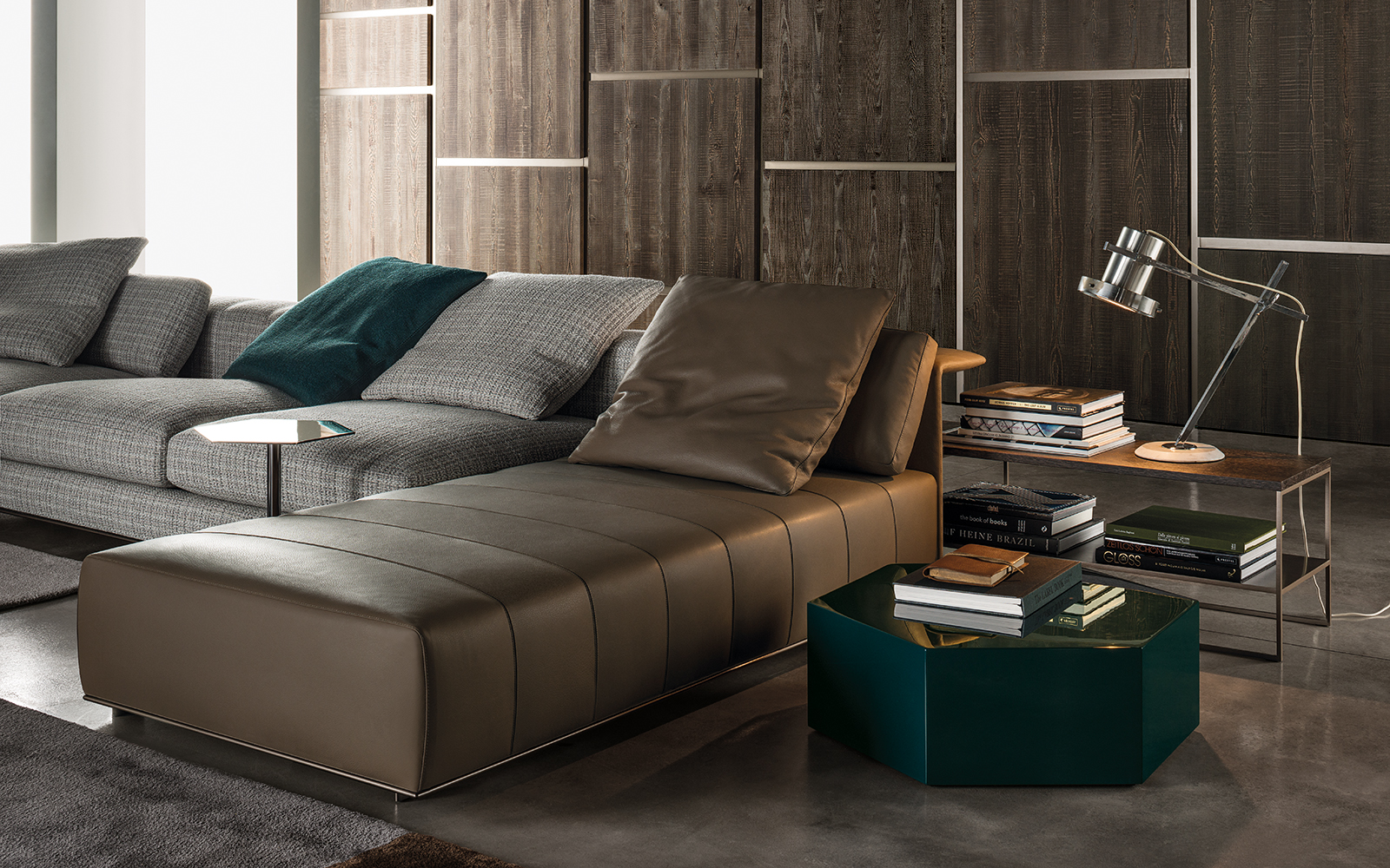 这一系列专为打造居住空间的实用元素而设计,布里斯莱边几具有独特的个性。基座和桌面是完全对称的六边形,这也是2016系列的主旋律之一,镀铬金属材质则突出其利落的个性。布里斯莱推出两个版本:一款是基座和桌面对应的六个角分别用细杆连接,另一款是由中心位置的镀铬金属杆连接基座和桌面。布里斯莱是一款多用途的边几,可以随心所欲地搭配Minotti产品系列中的所有沙发和扶手椅。
