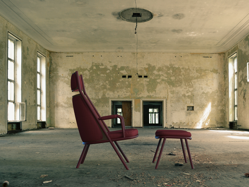 A clever contraposition of hard and so , the plywood back cling to the metal and the upholstery wraps it gently.