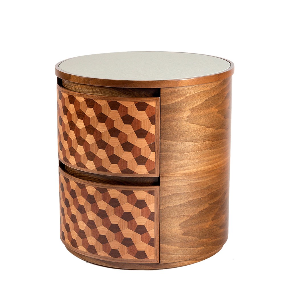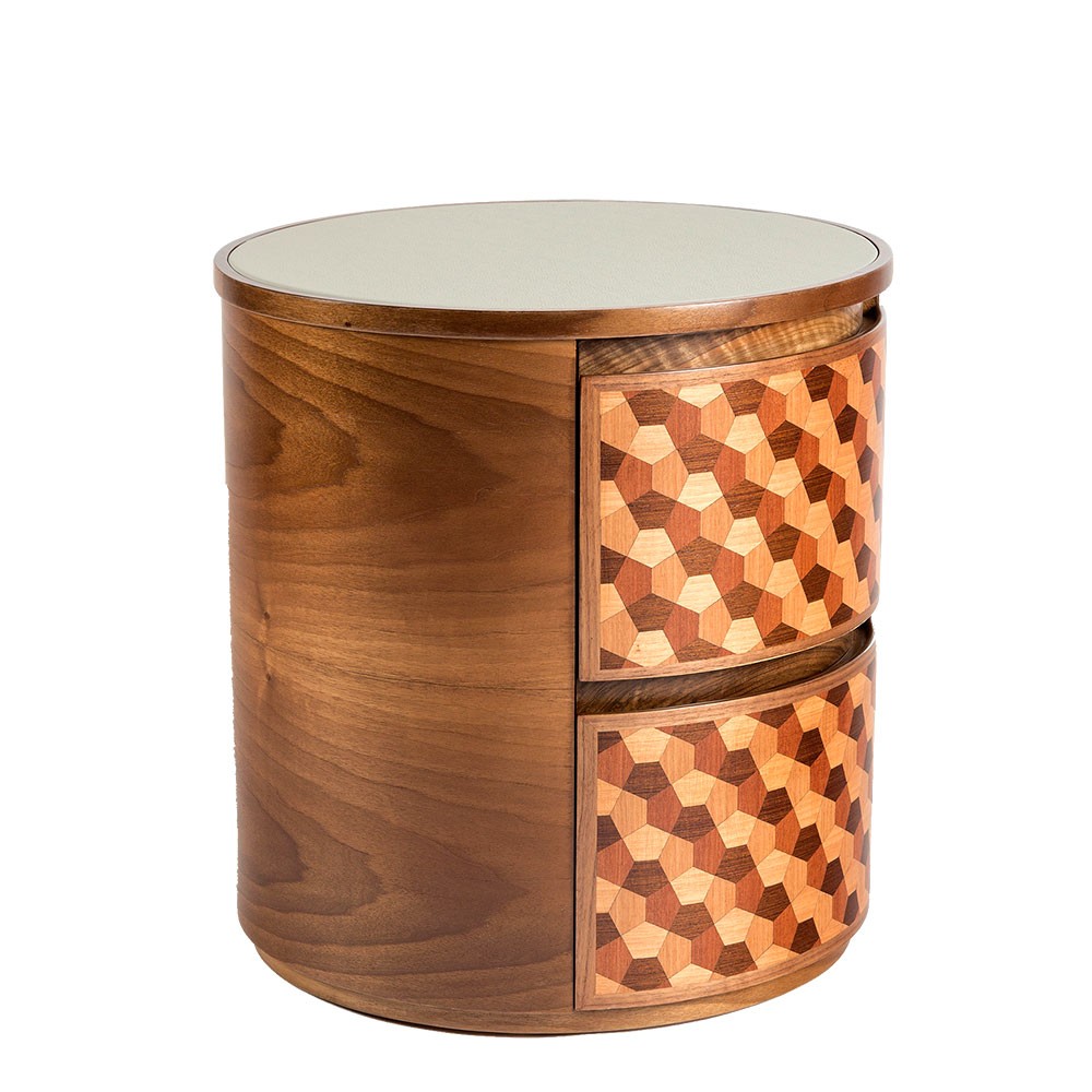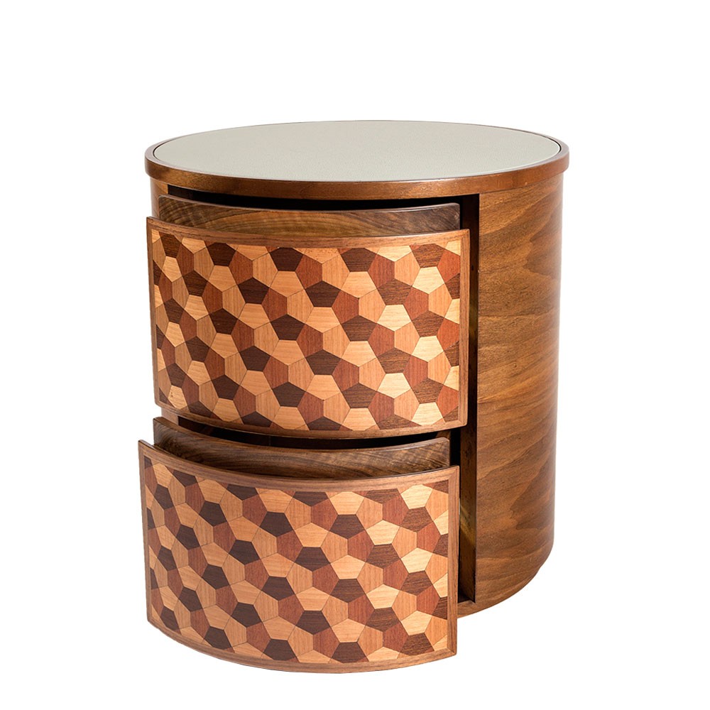 这款独特的“Dip Nightstand”采用四种单色木材制成。 它是通过组装几何图形来创造的拼凑在一起,描绘出迷人的3D幻觉。