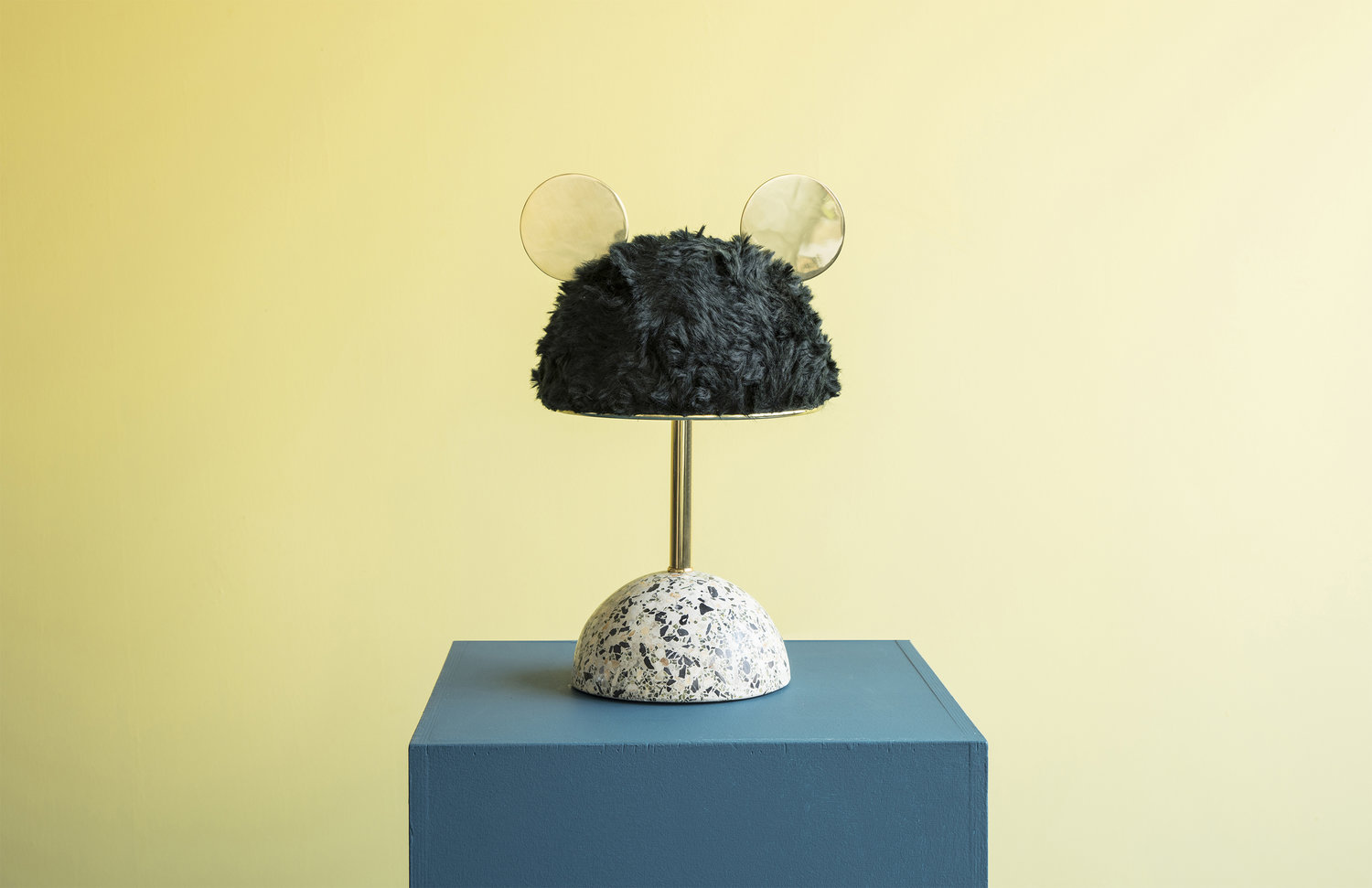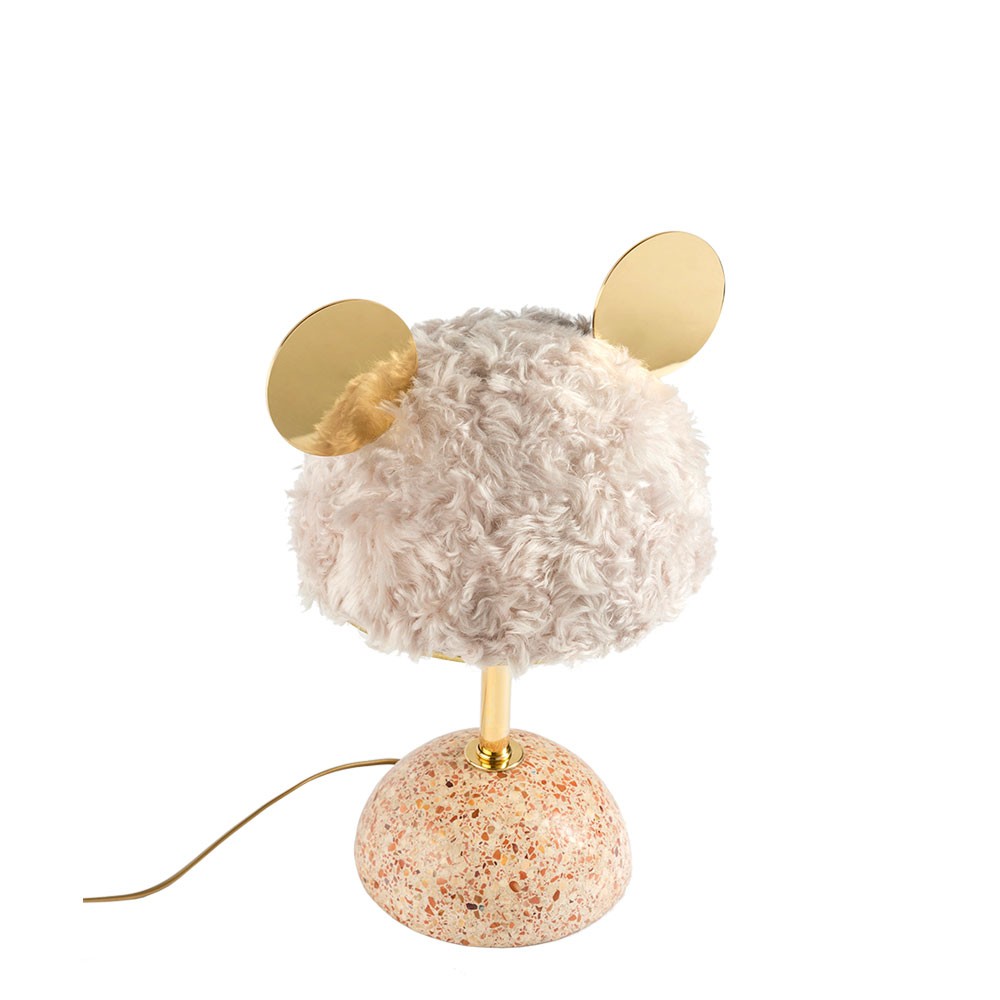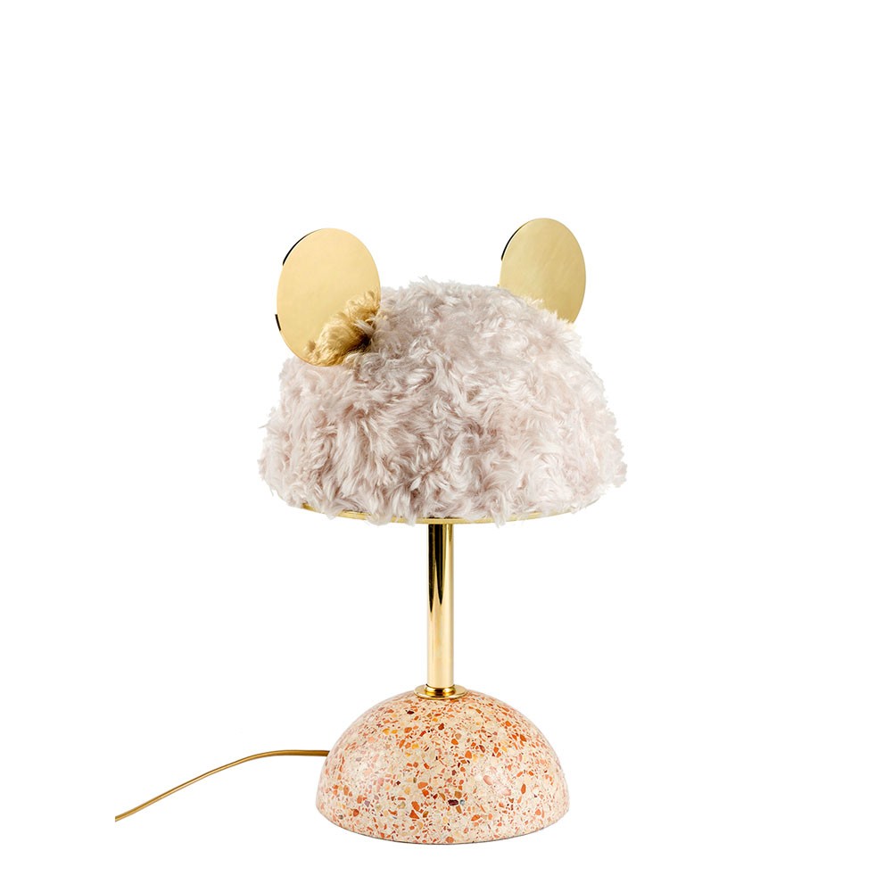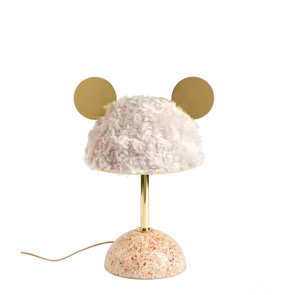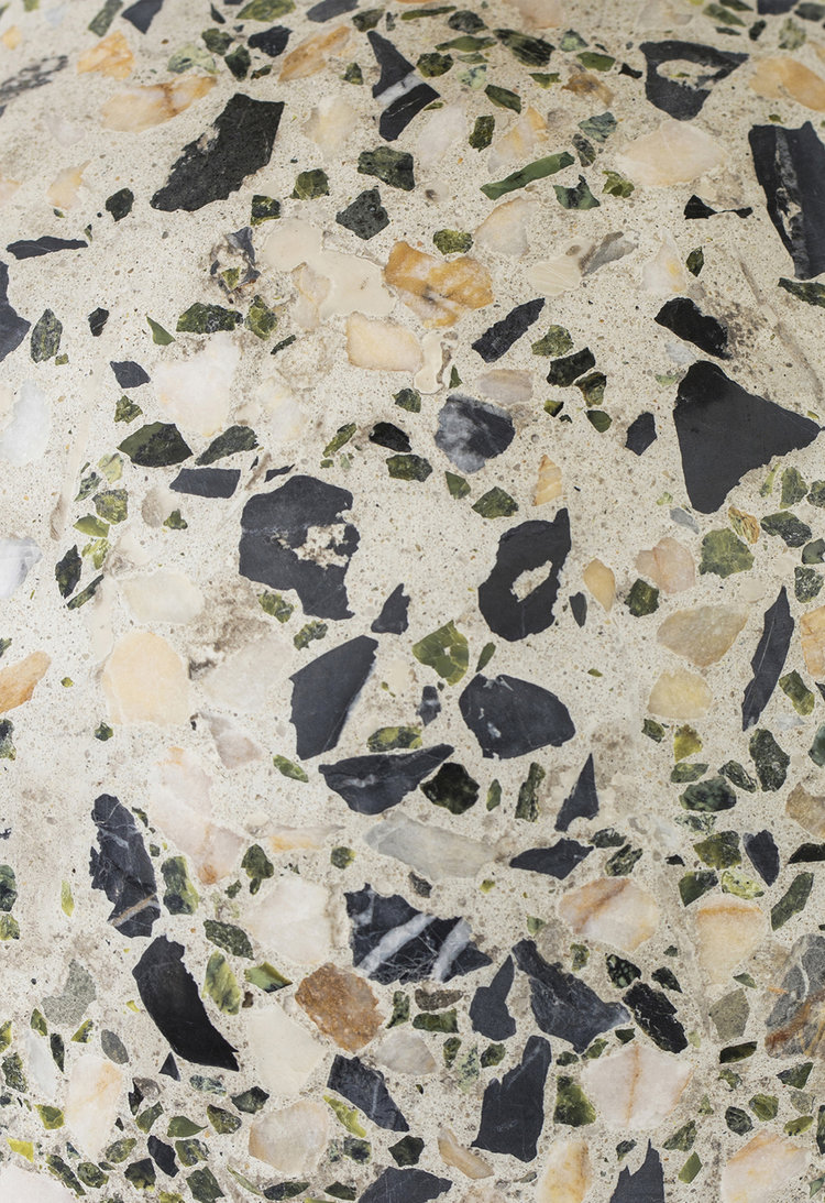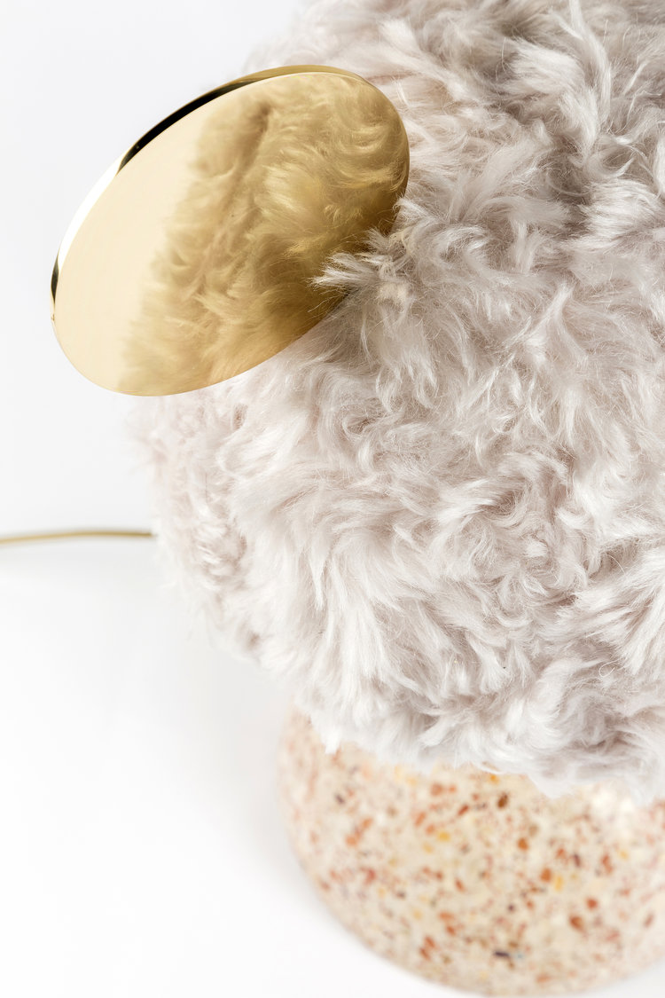 统一的绿色米色水磨石,深绿色软垫灯罩和抛光黄铜装饰,营造出这款俏皮长大的台灯。