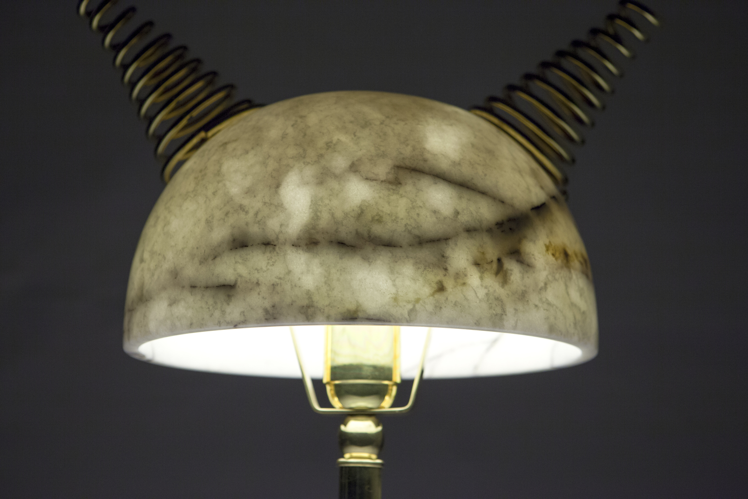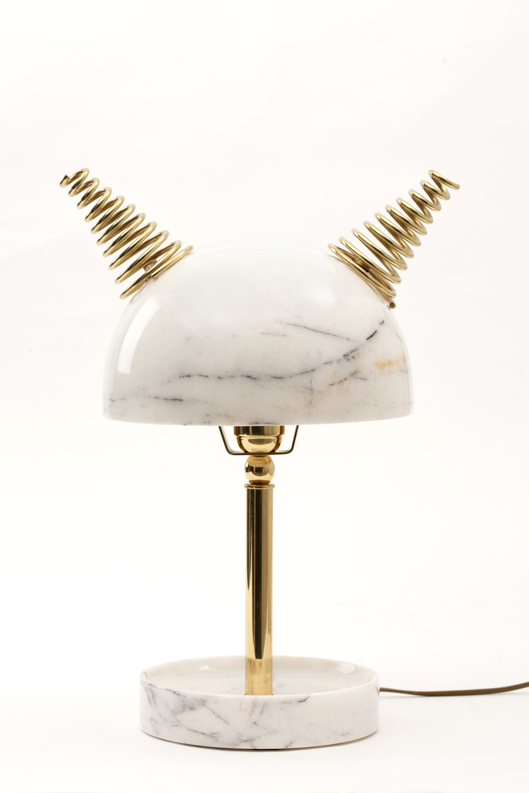 “Min Lilla Viking”(My Little Viking)台灯向老式斯堪的纳维亚战士头盔致敬。 它与现代风格的形状和风格相呼应。 金属盔甲和骨头已被大理石和抛光黄铜所取代,使这种野蛮的象征更加优雅。 当点燃时,Carrara和Afyon大理石通过揭示类似行星的石头的丰富自然纹理使观众感到惊讶。 “Min Lilla Viking”是将在不久的将来发布的一款严肃的漫画台灯中的第一款。