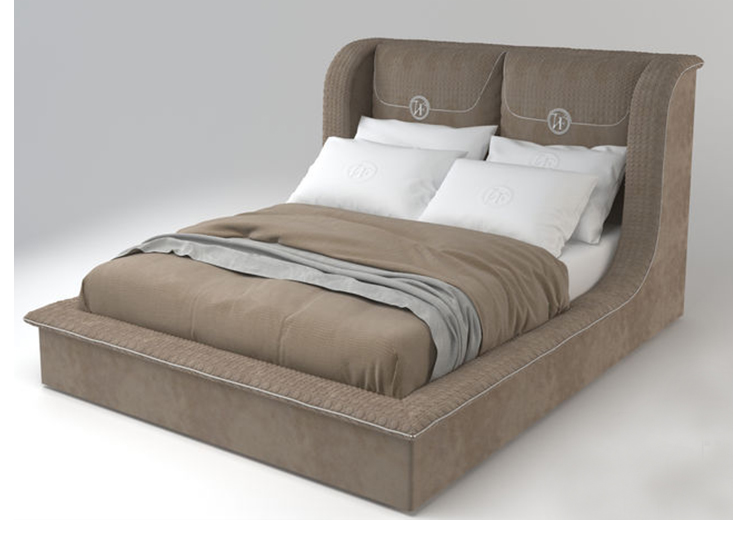 高床头和珍贵的刺绣充实简单的这张床光和现代设计的特征。
