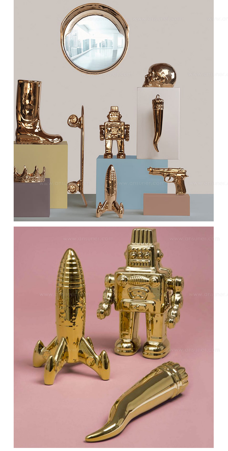 与Memorabilia系列一样,Memorabilia Gold是一系列独立装饰品,让人想起文化或历史事件,这也增加了兴趣点。 “我的滑板”实际上被设计用作食品拼盘,用于寿司或冷肉等食品,体现了Seletti对功能性艺术的热爱!
