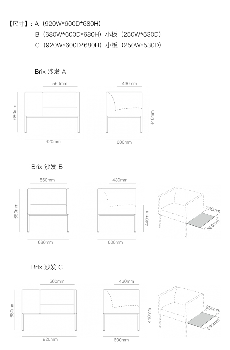 Brix 沙发 系列尺寸/示意图