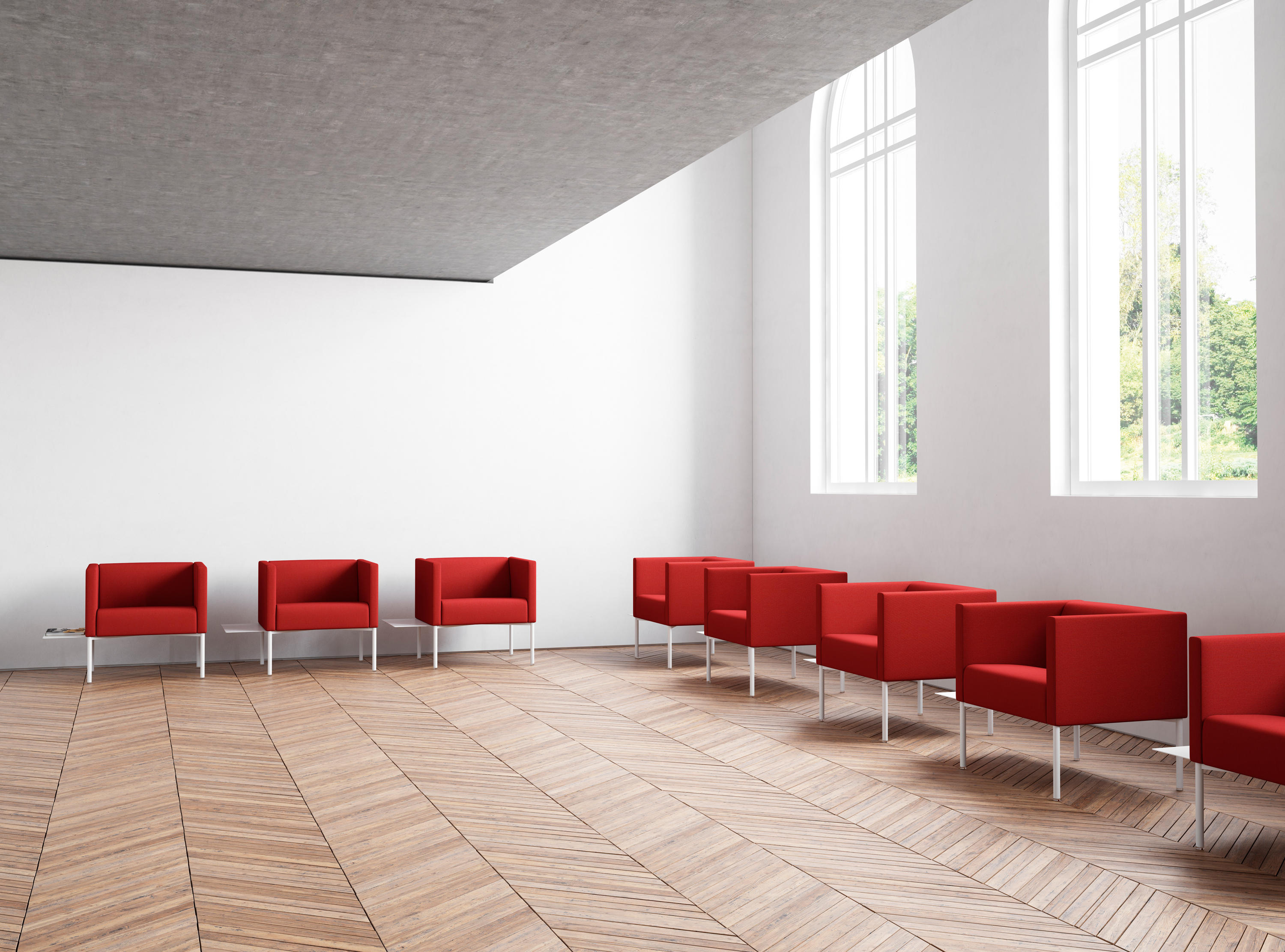 得益于其几何设计,许多单元可以组合在一起以在公共区域中创建优雅的配置。