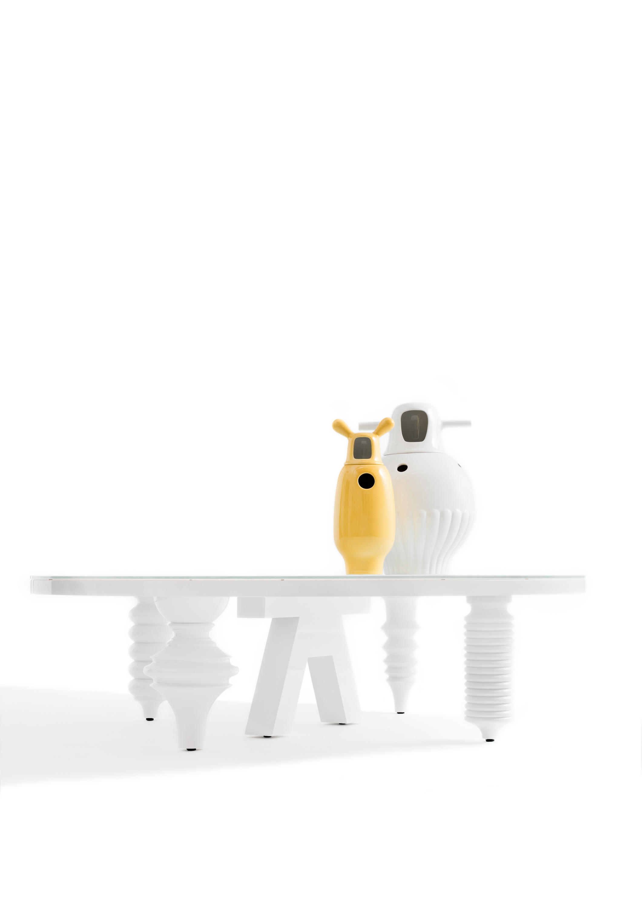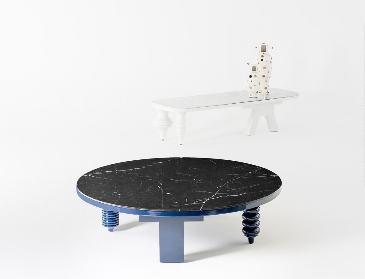 标准表面处理:DM高光或哑光底漆。坚固的turned木腿脚,并涂有不同 颜色的高光或哑光漆。顶部为8毫米光学玻璃,其底面涂有与漆面相同的颜色。 Showtime 10表面处理:与高光泽的标准版本相同,并在Green Patrizia,White Carrara Venato和 Black Marquina中提供2厘米厚的大理石台面。