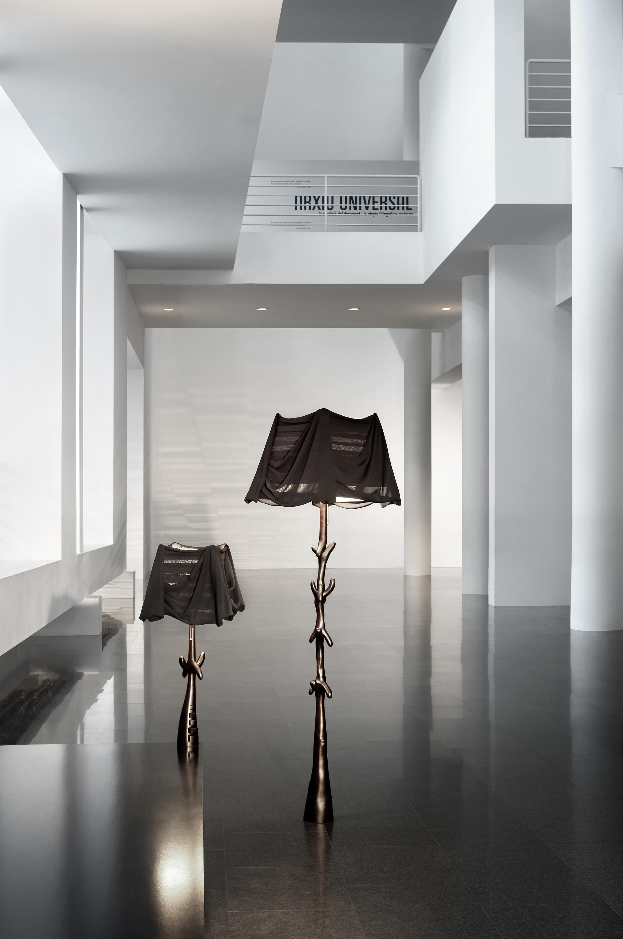 浅漆榉木支撑架。象牙色的棉和人造丝阴影,手工制作。
