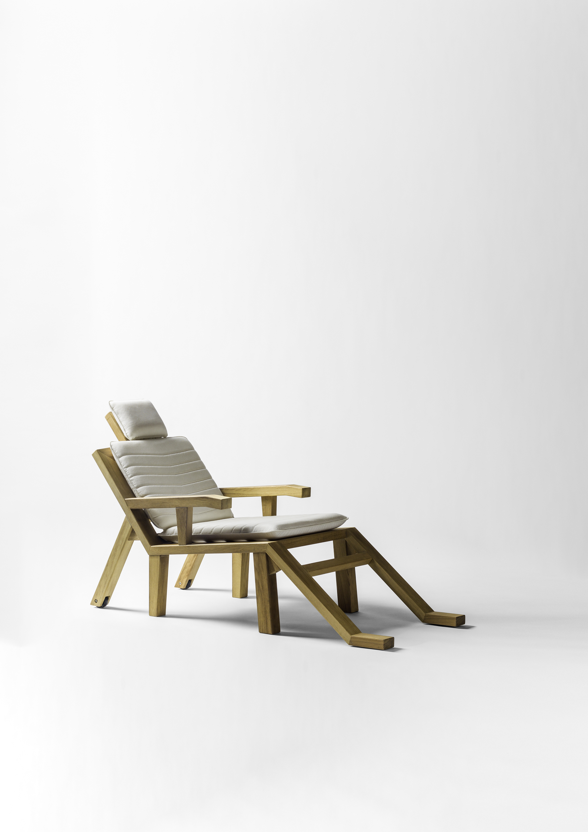 坚固的Iroko木制结构,带有聚酰胺轮子。可选的软垫软垫,带有防水泡沫和适合户外使用的材料。盖板可拆卸。