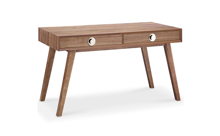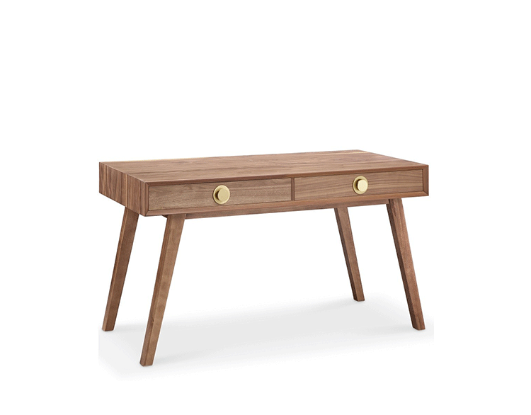 victory desk(胜利桌)设计简单、坚固且绝对的迷人,所设计的两个抽屉可以为你存储所有小物品。制作采用精选MDF板基材胡桃木或水曲柳木皮贴面、实木脚架、环保油漆喷涂,做工精湛,品质一流。