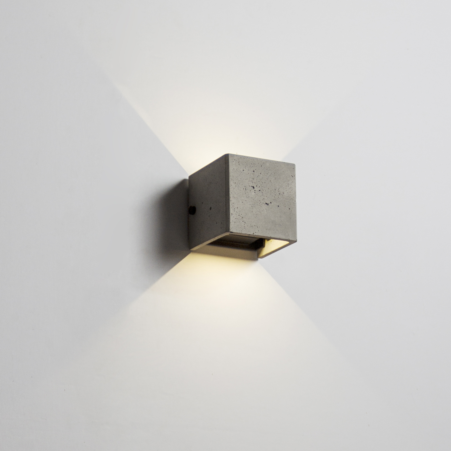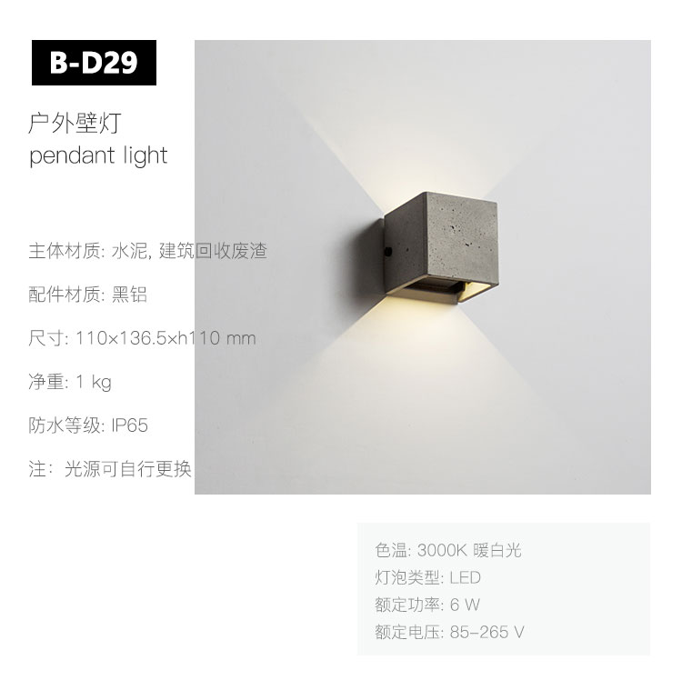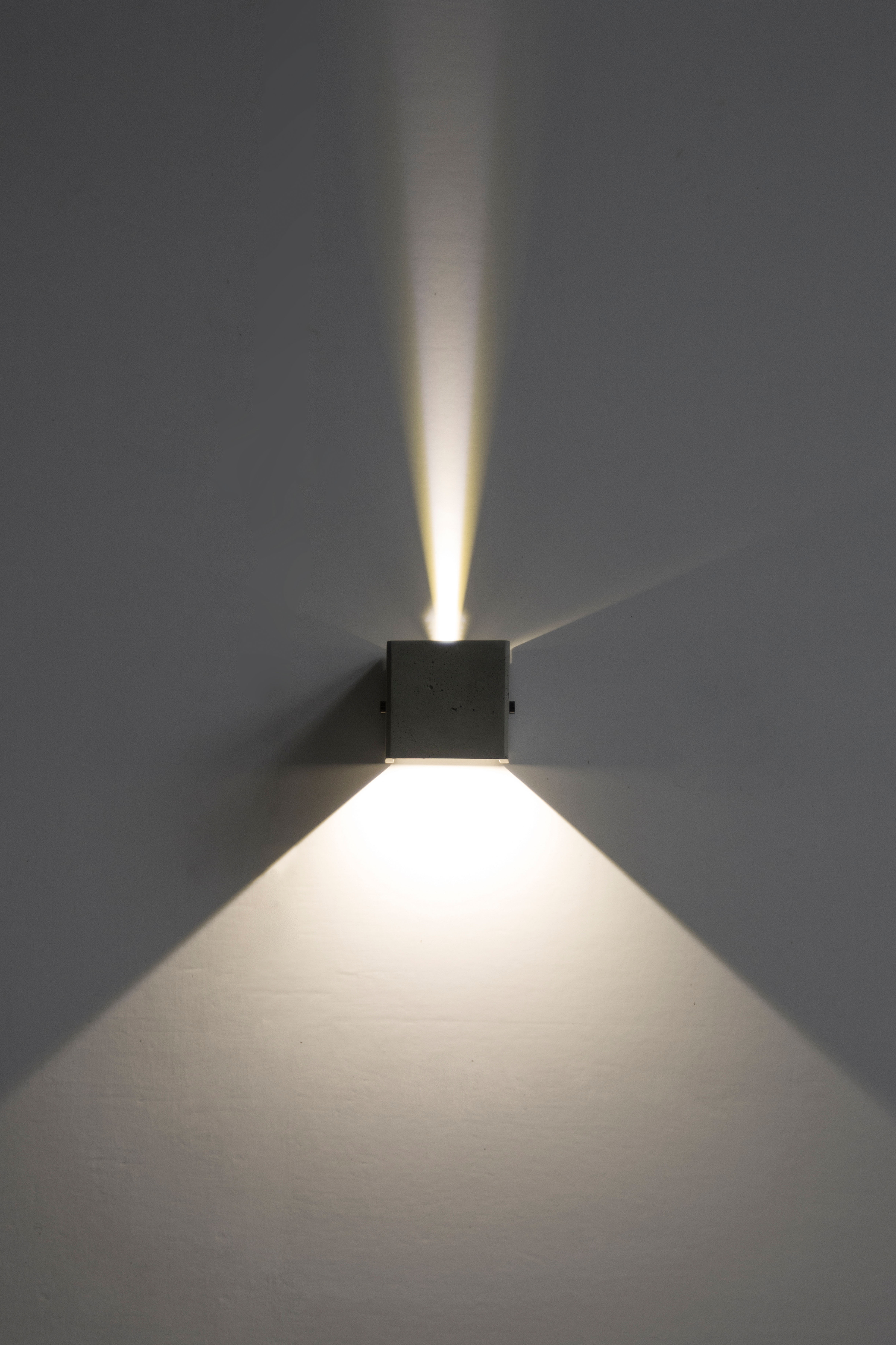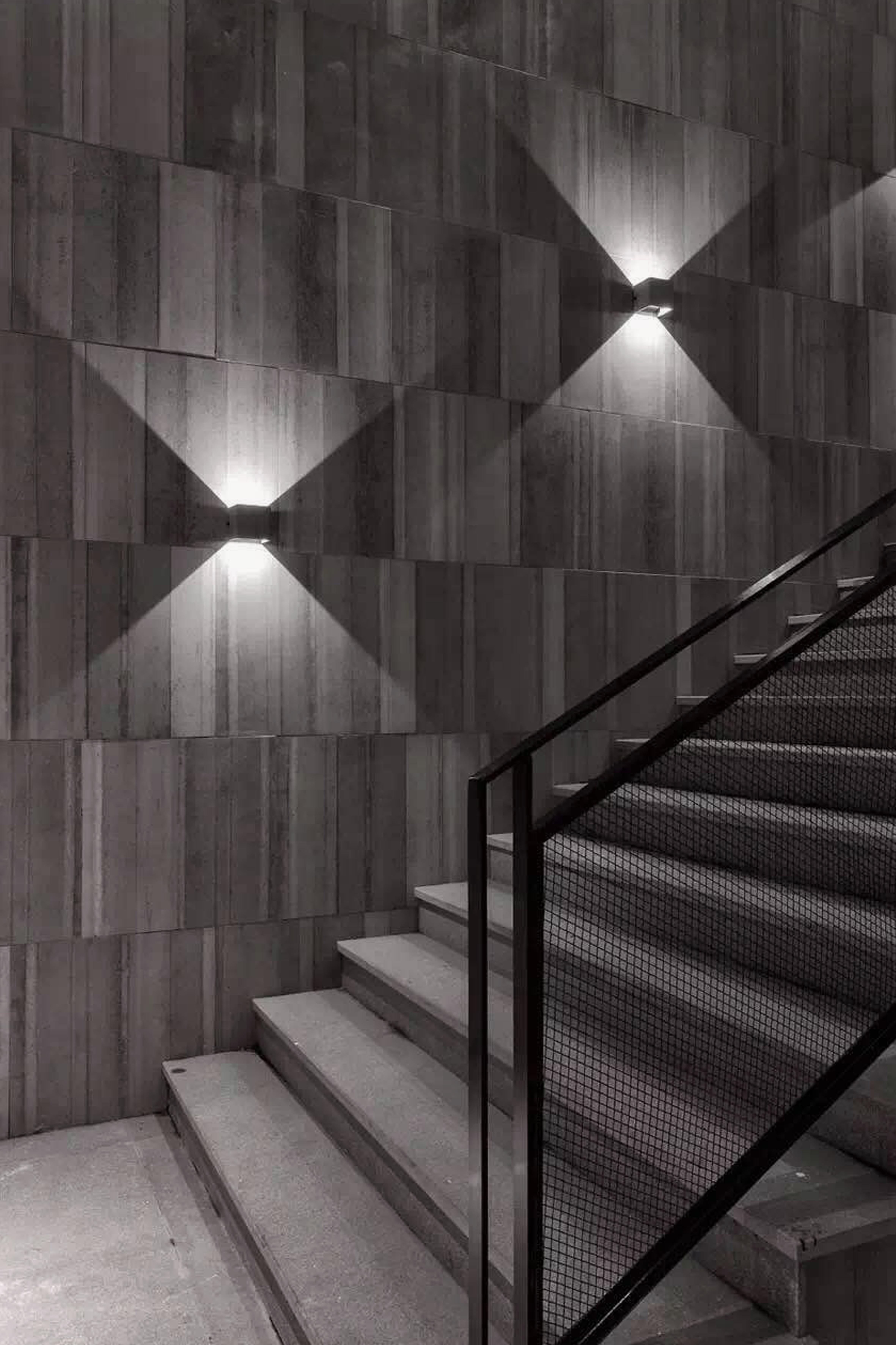"V"壁灯可室内与户外兼用,防水等级 IP65; 内含挡光黑色金属片可以自由调节光线方向,呈现的光影效果丰富多变。