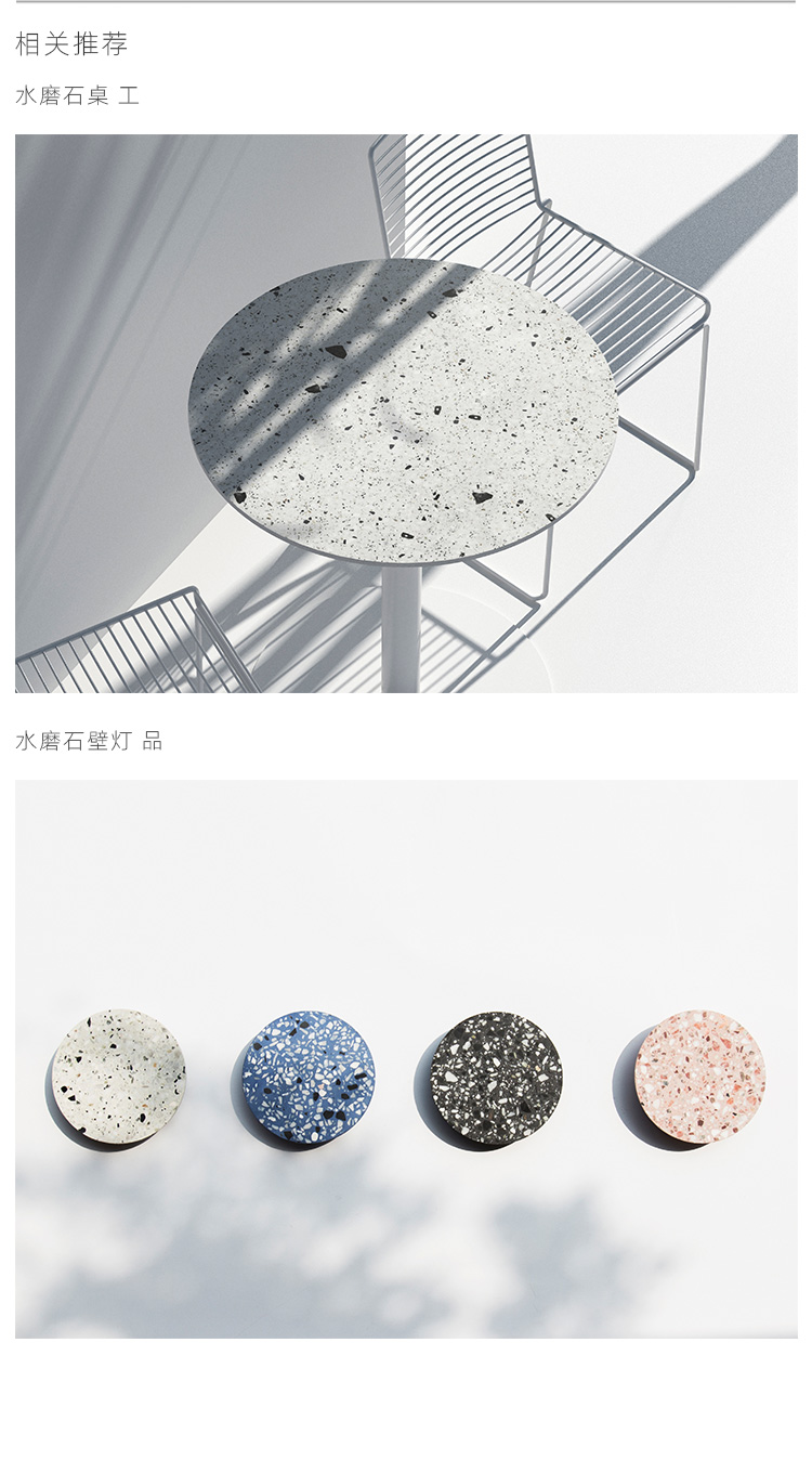 以材质再生为基本手段的水磨石系列,将陶瓷废渣再生成简洁形态的日常性家具,以衍生产业的形式回归到大众层面的使用中。 中国佛山,这片拥有全球最大最成熟的陶瓷产业链和产业集群的建筑陶瓷工厂的土地,承载着每年400万吨陶瓷废弃物带来的环境污染。 以材质再生融入日常,不仅是激发商业价值的大胆尝试,是环保理念的日常化实践,更是对自我尊严的基本坚守和追求,我们探寻陶瓷跨越地域局限的一种当代突破!