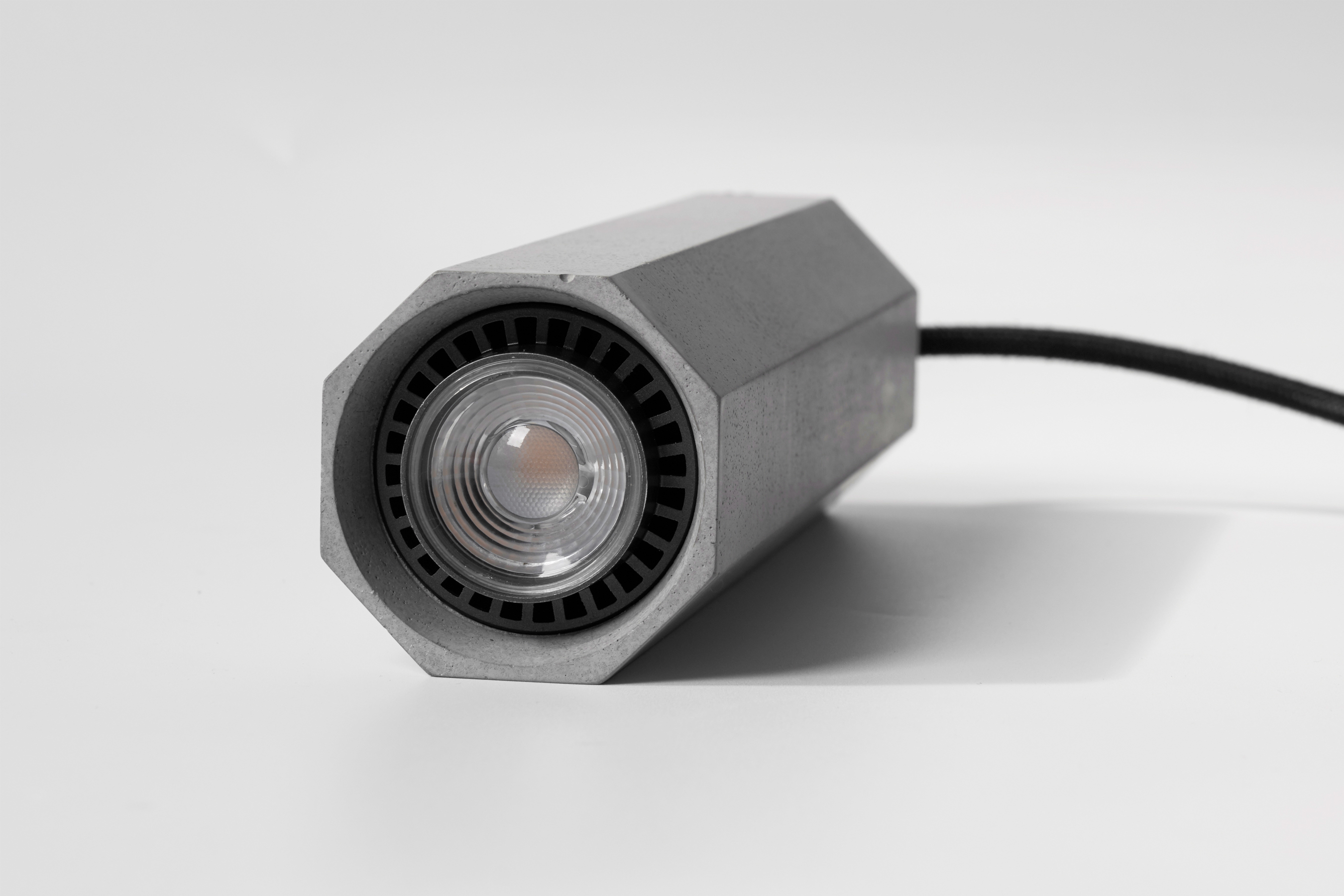 特点:轻薄/方便更换/精致/易搭配,聚光感适中,有八边形与圆形可选,分别适用于硬朗与柔和的空间,吧台/前台/餐桌下均合适的吊射灯。