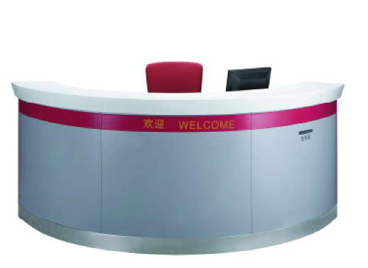 咨询服务台采用标准化的半圆角设置,台身设计严格按照银行统一标准,尺寸及弧度度量精确,标志设置清晰,且观赏性十足,台面采用浅色木色面和白色人造石台面相配搭,显得美观醒目。型号: