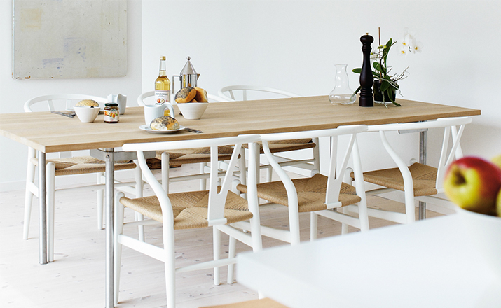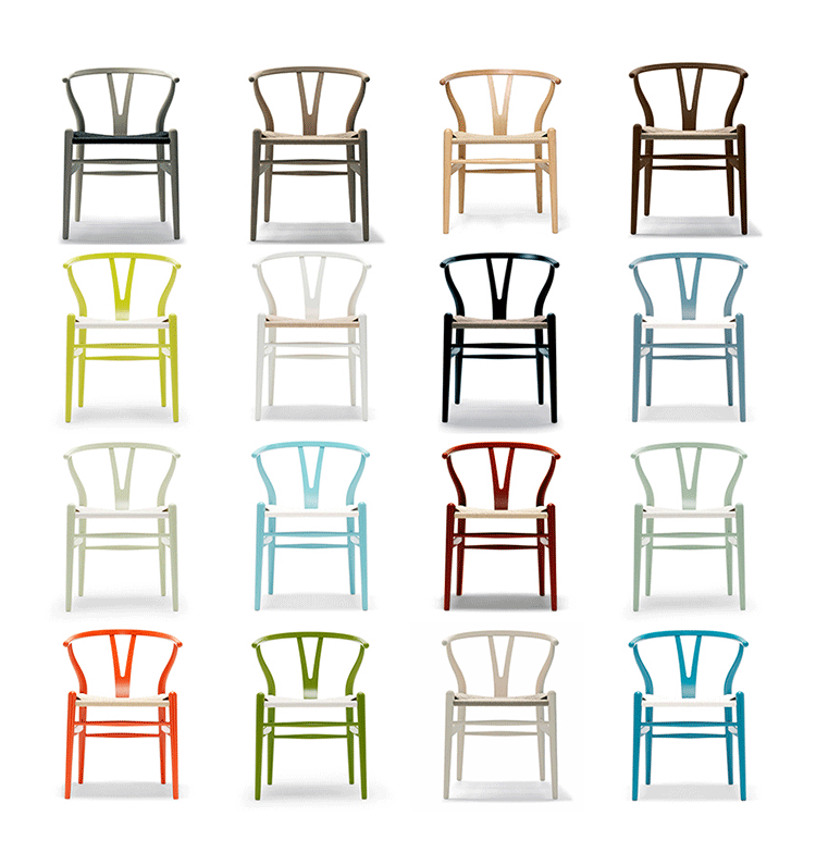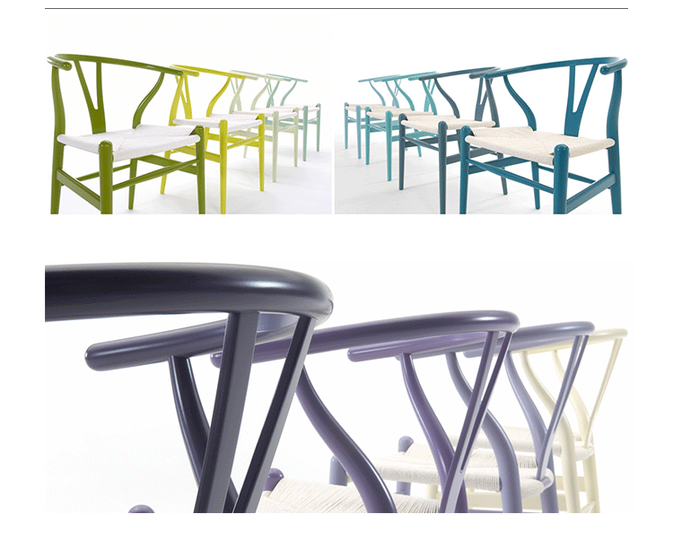 Y椅子是Hans J.Wegner最著名的作品。 它具有重量轻、有吸引力、舒适、中式风格等特点。 该款设计灵感来源于中国传统家具,四平八稳,古色古香,大气自然。上圆下方,浑然天成,深受中国顾客喜欢。Y椅关键在于是工艺与简约的设计,有着清晰的线条。 尽管椅子简约的外观要超过100个步骤进行。除其他事项外,手工编织座垫超过120米的线。 材料有丹麦硬木(橡木,榉木,水曲柳)以及北美硬木(胡桃木,樱桃木)等。外表可漆成各种各样的颜色。 垫子的座位可以添加额外的舒适。
