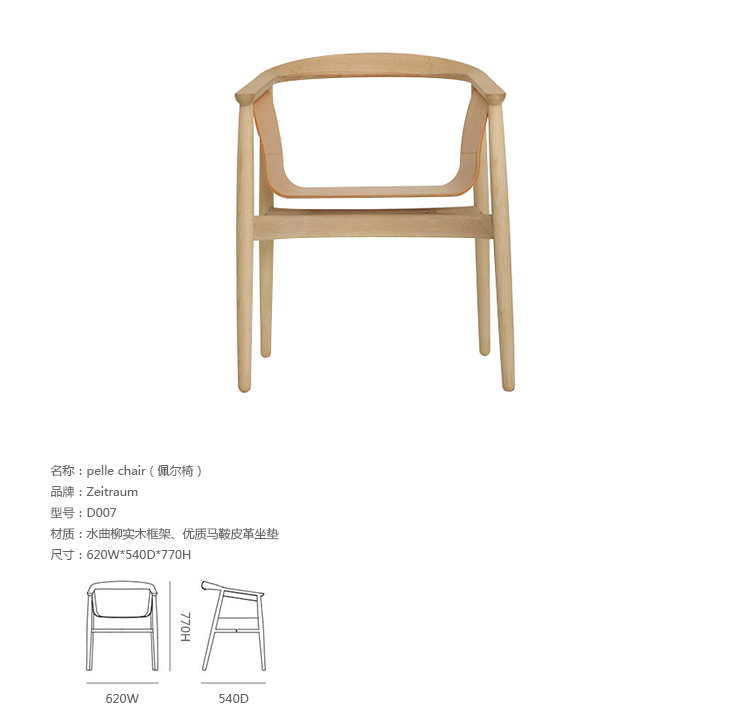 德国家具厂牌 ZEITRAUM 讲究的不仅仅是家具,它着重的是一种"生活态度",每件 ZEITRAUM 家具除了需具备实用、耐用、容易搭配的基本要件,更重要的是可以衬托用户与空间的个性,简约取代夸张花俏的线调,细腻精巧的做工低调传递设计师缜密的设计思维。ZEITRAUM 使用来自永续森林的落叶型硬木,表面以有机油/蜡涂装,完全不使用化学物质,让用户与家具在空间自由呼吸。优雅外型融合宽敞的乘坐空间是 Pelle 扶手椅的特色,悬吊式的马鞍皮椅座内衬铝板,让整体视觉更加简洁利落。
