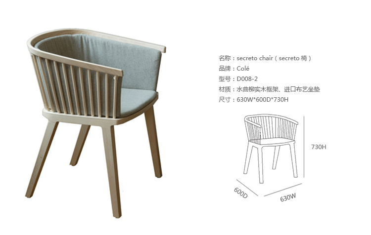 Secreto椅出自意大利设计品牌Colé,设计师为Lorenz*Kaz,一把同时展现现代与传统的扶手椅,Secreto椅传达了完美简洁的精髓是:“以传统工具为灵感去工作,以现代工艺品位去制作”。结构是其一个关键元素,在制造和细节上表现了其复杂性,尤其是其靠背,通过手工将每一个实木连锁杆紧紧固定在椅座上,可提供天然实木榉木,亚光漆的白色或黑色 (可按要求定做),您也可以选择舒适的纤维织物坐垫以提高舒适度。