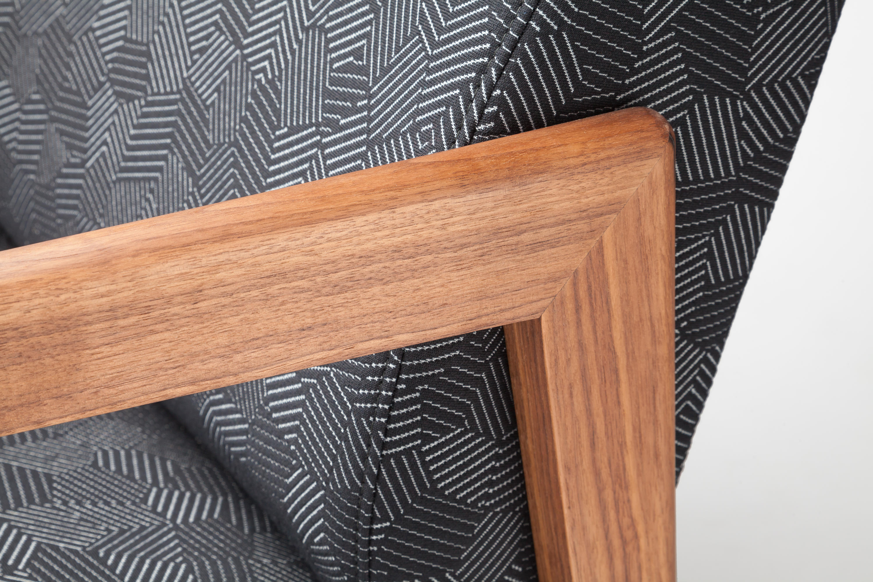 几何图形的轮,水曲柳或胡桃木或实木框架,优质环保高密海绵填充、外裹高级进口布艺或PU,做工精湛,这是860系列休闲椅的特征。非常舒适的坐垫和靠背,出的、动态的轮廓,适用于商业和休息环境。设计师Lydia Brodde说:“我尤其着迷于1960年代的设计及其清晰,几何的形式。 我想将这些元素转化为一个新的永恒。”。这就是她设计860的初衷。一把适用于任何环境的椅子,并可根据个人喜好赋予其个性化,860休闲椅做到了。实木的框架,有扶手和无扶手两种版本,在配上一个脚凳椅,保证了最大松弛度和舒适感。