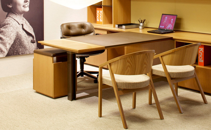 A Knoll Shelton Mindel Side Chair offers a contemporary reinterpretation of a traditional wood side chair.The Mindel chair is suitable for private offices and common areas,as well as a variety of hospitality and dining applications.This version of the Knoll SM Side chair offers a fully upholstered back for soft comfort.