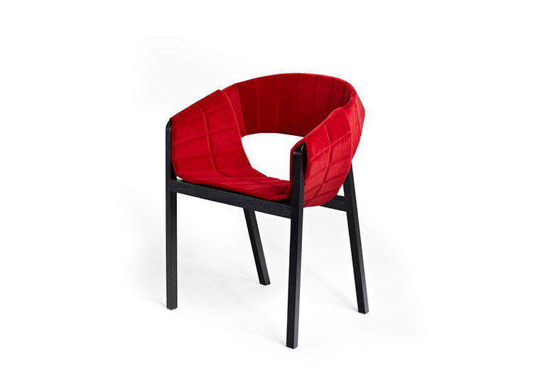 The armchair is a stylish piece of furniture that can change its appearance at will: the essential innovation of the armchair is its cushioning, which lies over the supporting structure like a ceiling. The precisely manufactured pieces of fabric are fastened with snap-buttons, which allows easy replacement and radical alternation of the chair's impact using colour changes. The base is made from minimal wood cross-sections and features the hallmark of Jörg Boner: an appearance that is both graceful and sturdy.