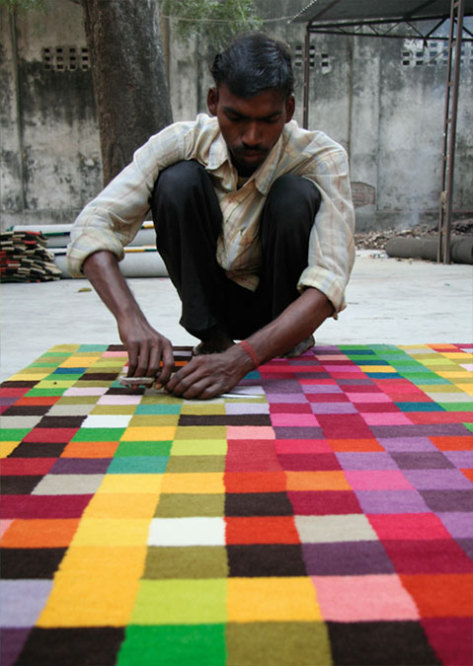 根据白天的光线或时间,粗略地看一下构成地毯的26种颜色的一部分的随机结合,总是能创造出令人吃惊的令人吃惊的组合;真正令人震惊的光学效果。