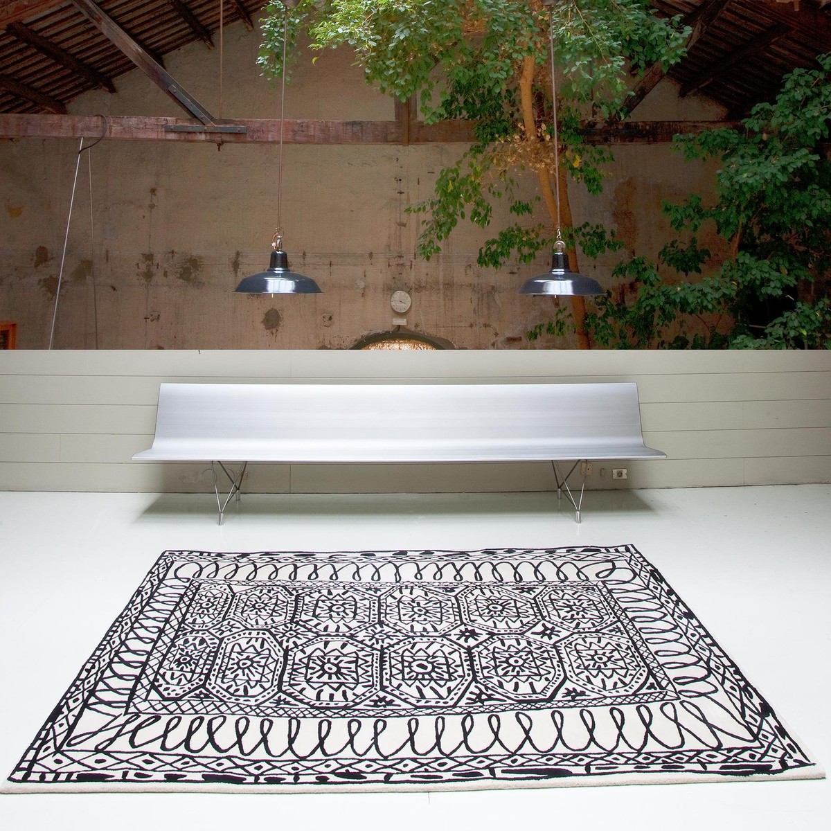 这张地毯最初的草图是由Mariscal在1987年绘制的水彩画。这个设计传达了经典波斯地毯的基本轮廓。利用这一概念作为起点,设计采用独特的模式更新,让人联想到漫画,综合东西方,将传统工艺和当代设计放在一个产品中。