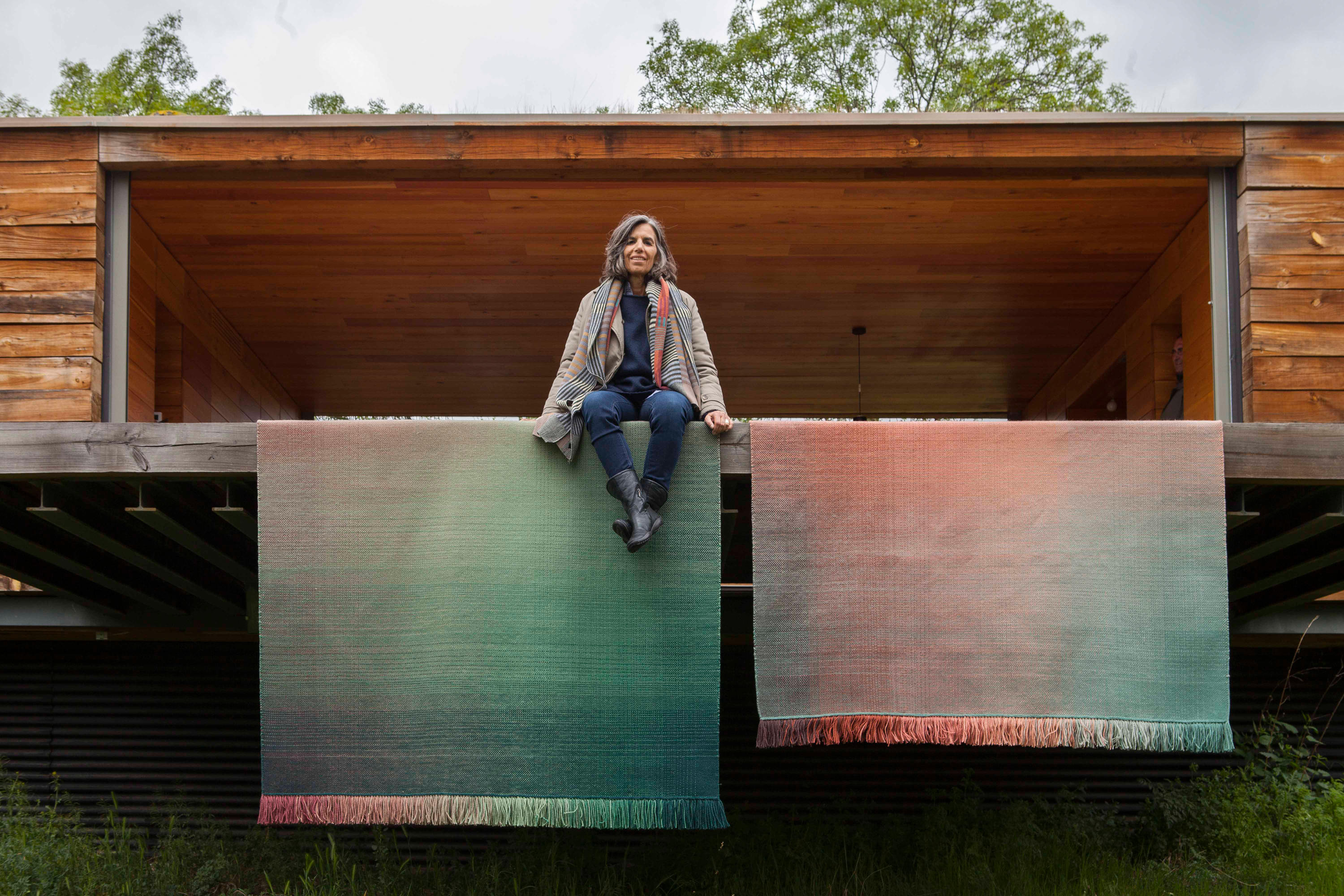 这种精致的简约风格反映了一种复杂的技术过程,以达到预期效果的密度、规律性和流动性。在同一平面上,每条地毯上都有两种渐变,一种是垂直的,一种是水平的。