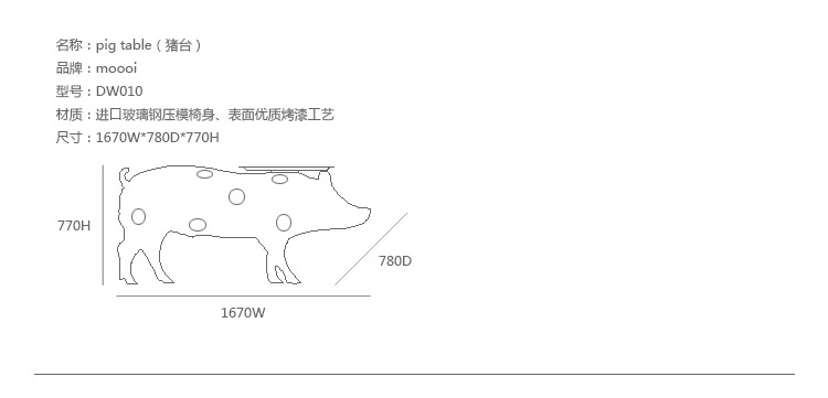 你想不想用一直原物大小的小猪台给你的客人提供饮品?猪台是Front设计的三套动物家具系列中的一个,他们设计的其他两款动物系列分别是马灯和兔子灯。Front设计团队成立于2003年,由四个设计师组成。所有成员都参与设计过程中从最初的讨论和想法阶段到最终产品生产。他们的作品建立在共同的讨论、探索和调查相关的不同主题的基础上。最终的产品常常通过在产品领域及材料组成间向参观者传达了一个关于他们设计经历的故事。猪台的托盘并不以对称的形式附着在猪上。托盘设置的角度可以调整的,且如果地面不平整还可以进行调整。猪台有着猪标志性、可爱的笑脸,颜色只有黑色可选。