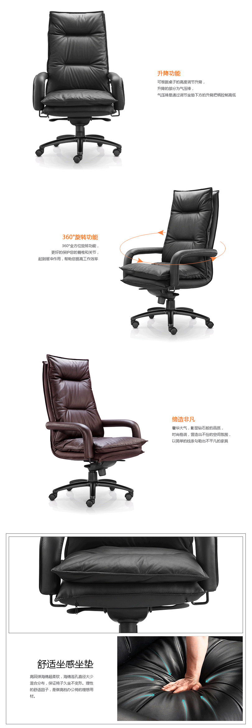 办公椅|现代真皮大班椅|办公家具|设计师家具|CG-E1046