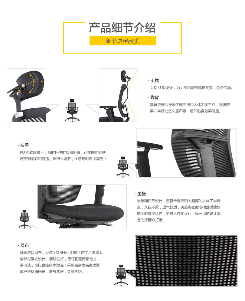 CG-E1054的优美设计有利于持久的舒适和美感。工学椅的结构和功能利用同步倾仰底盘控制功能锁定,滑座和高度调节。高度和角度均可调的扶手和头枕都包含在这张特有的工学椅里。