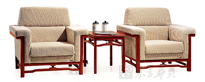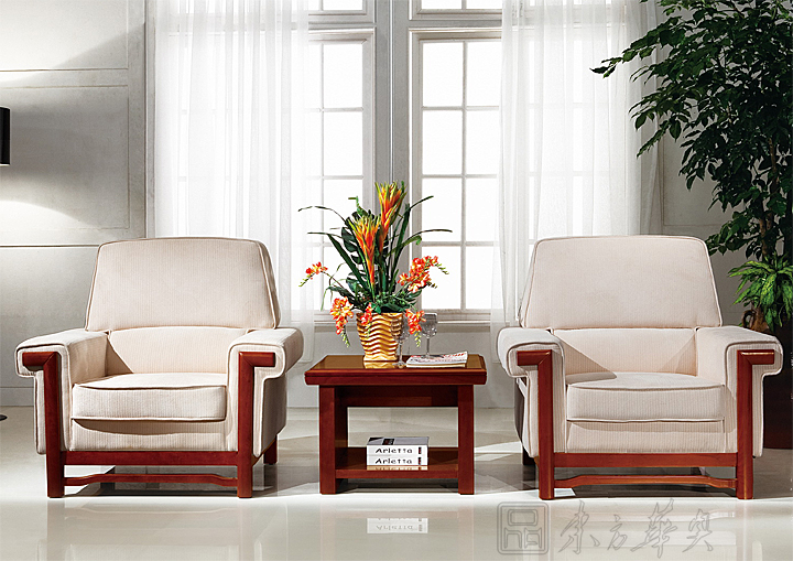 ※ 上图为类似款接待沙发的使用场景展示图,布面扶手,实木骨骼架,四脚沙发,简洁,舒适,但是也不乏厚实稳重!